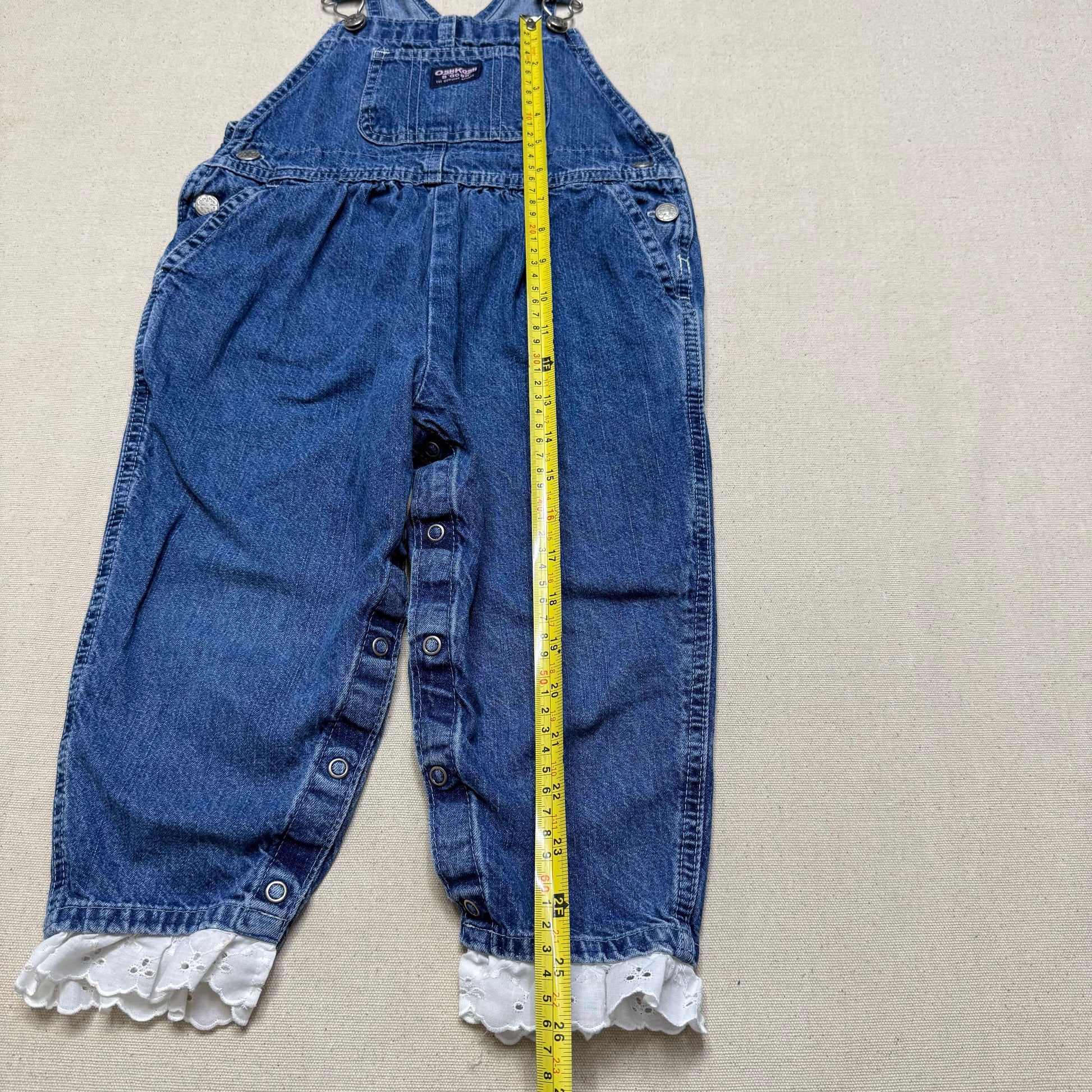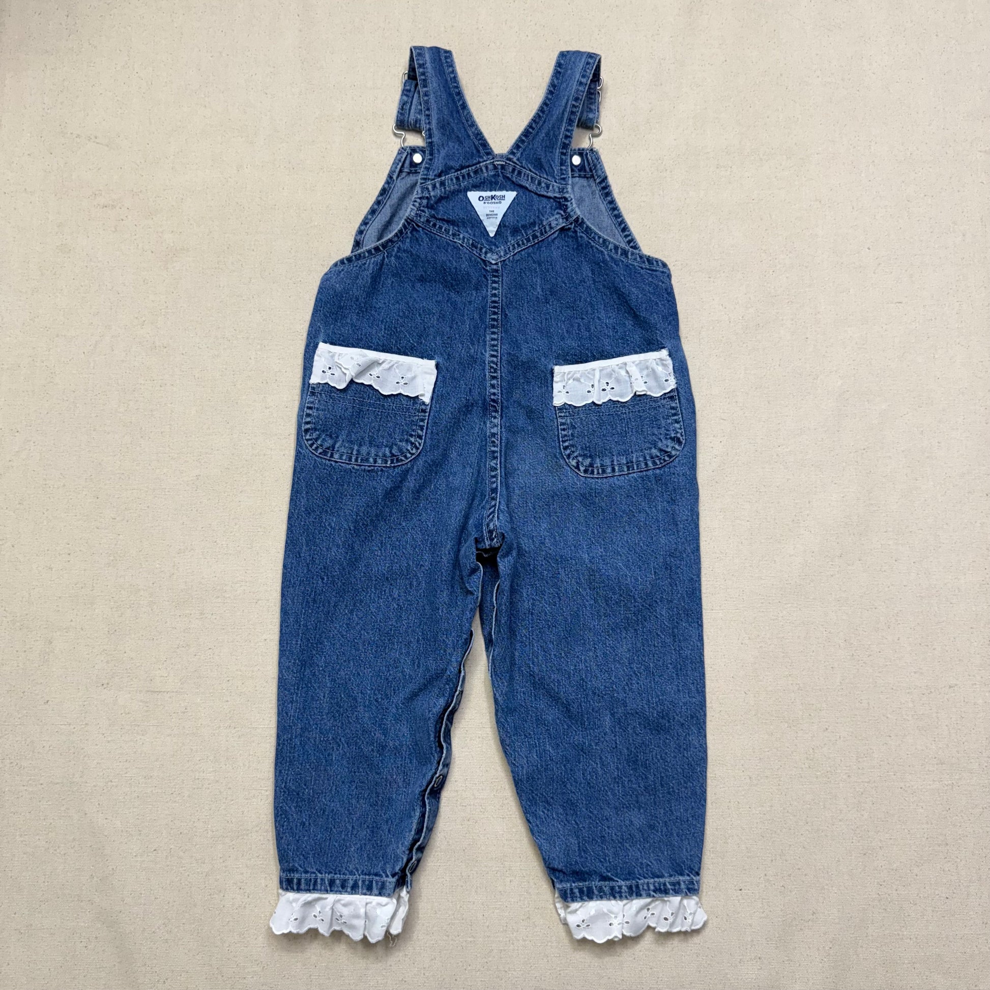 2000’ Y2K Kids Toddler Vintage Oshkosh Bgosh Lace Hand Stitched Loose Fit Denim Overall / 3T
