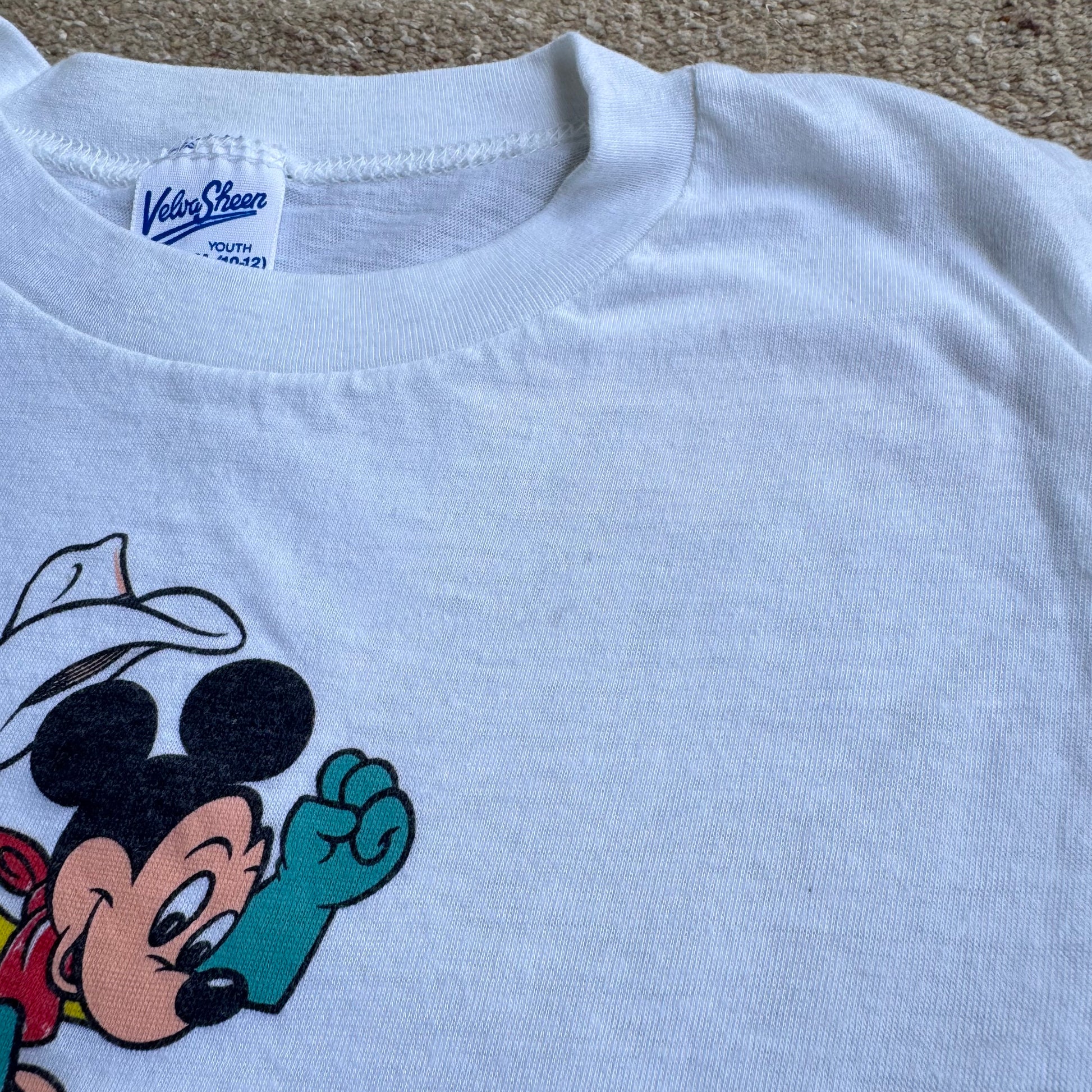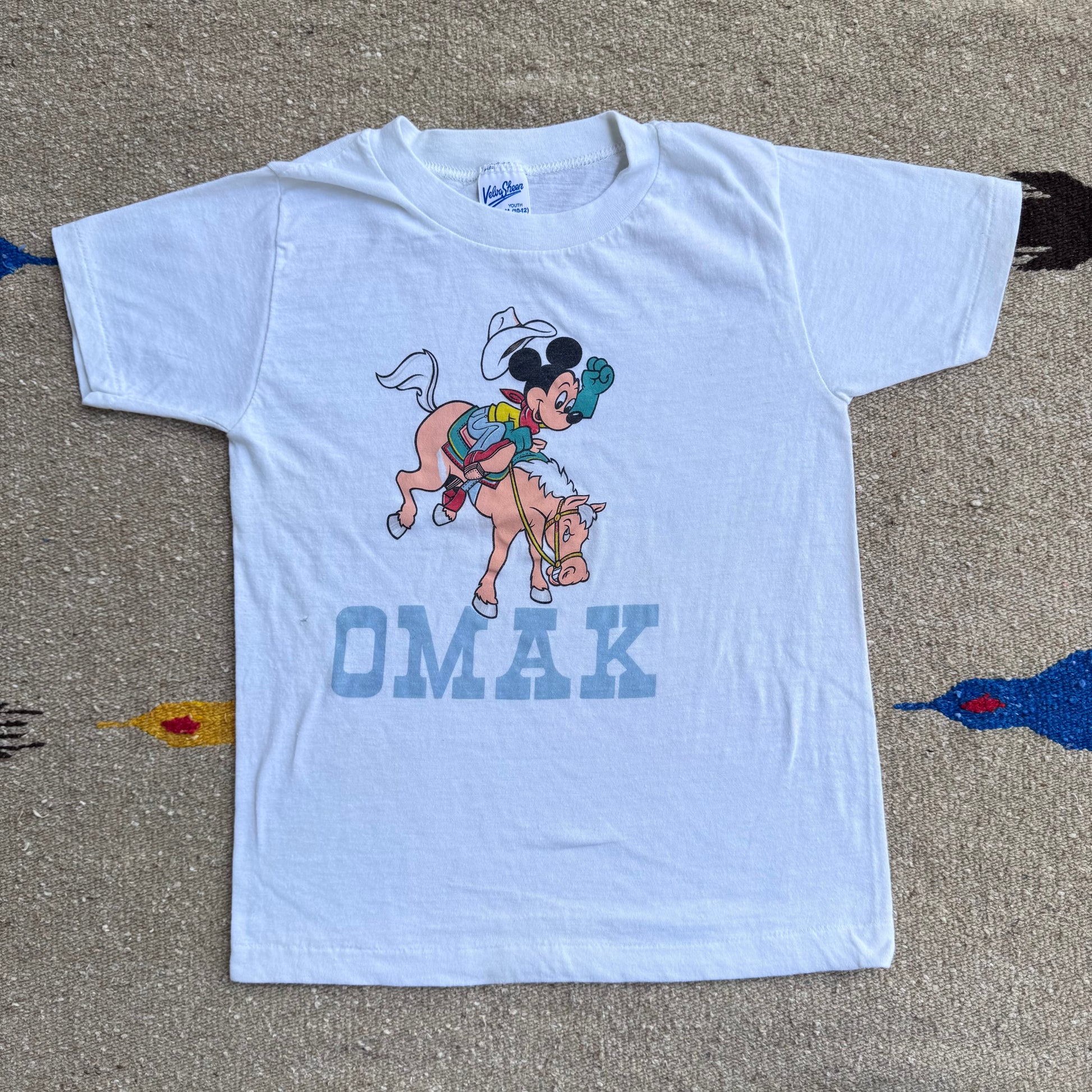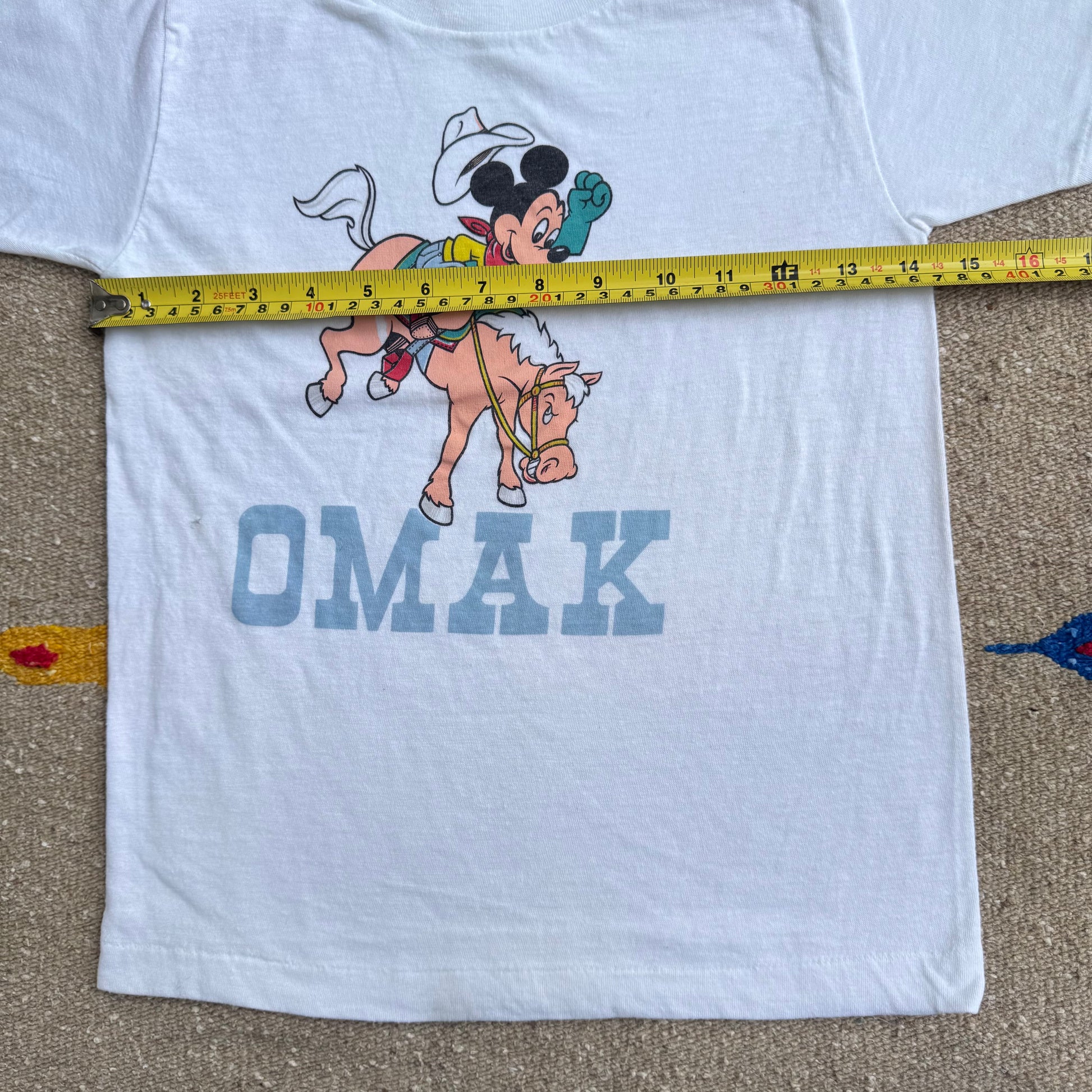 80s 90s Kids Mickey Cowboy Omak Single Stitch White T-Shirt M 10-12T Baby Tee Made In USA