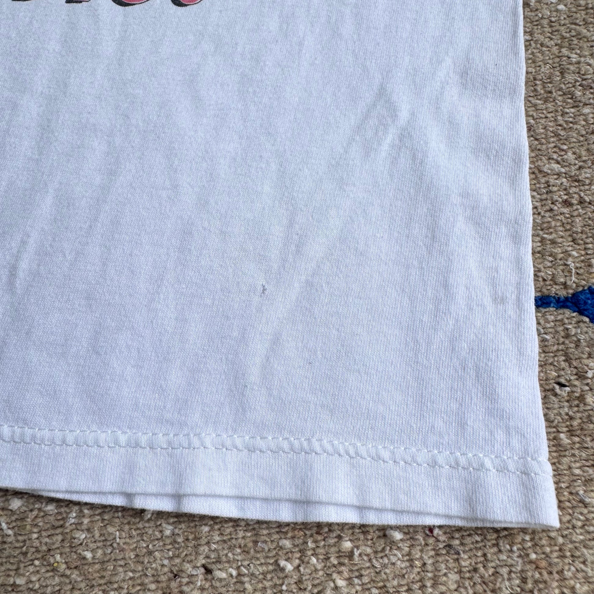 • In a good used vintage condition, has a tiny hole on the lower front body. Light yellowish spots on the right back sleeve