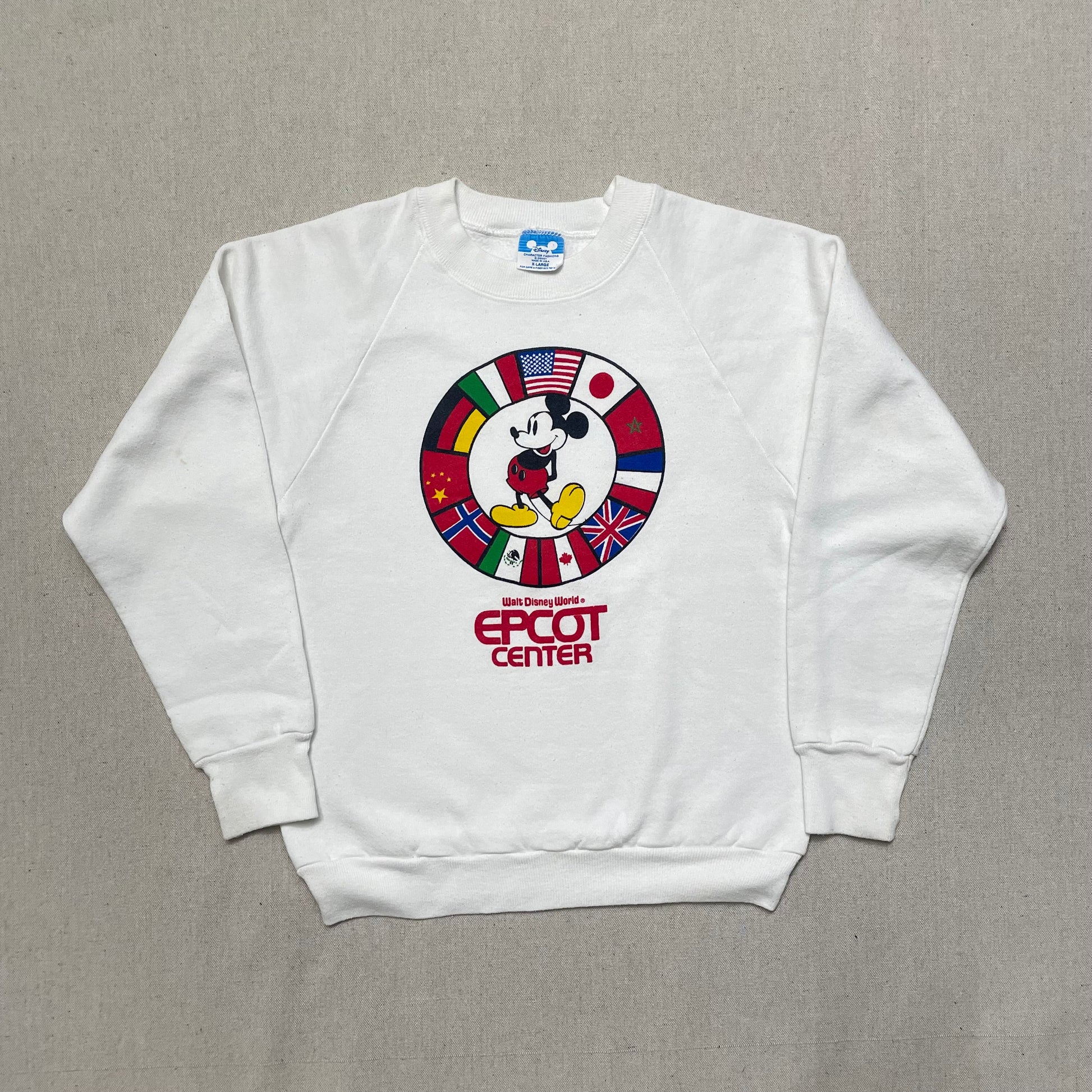 80s Kids Youth Vintage Disney Mickey Mouse Walt Disney World Epcot Center Flags Raglansleeve Sweatshirt / 10y 11y 12y 13y / Women's XS