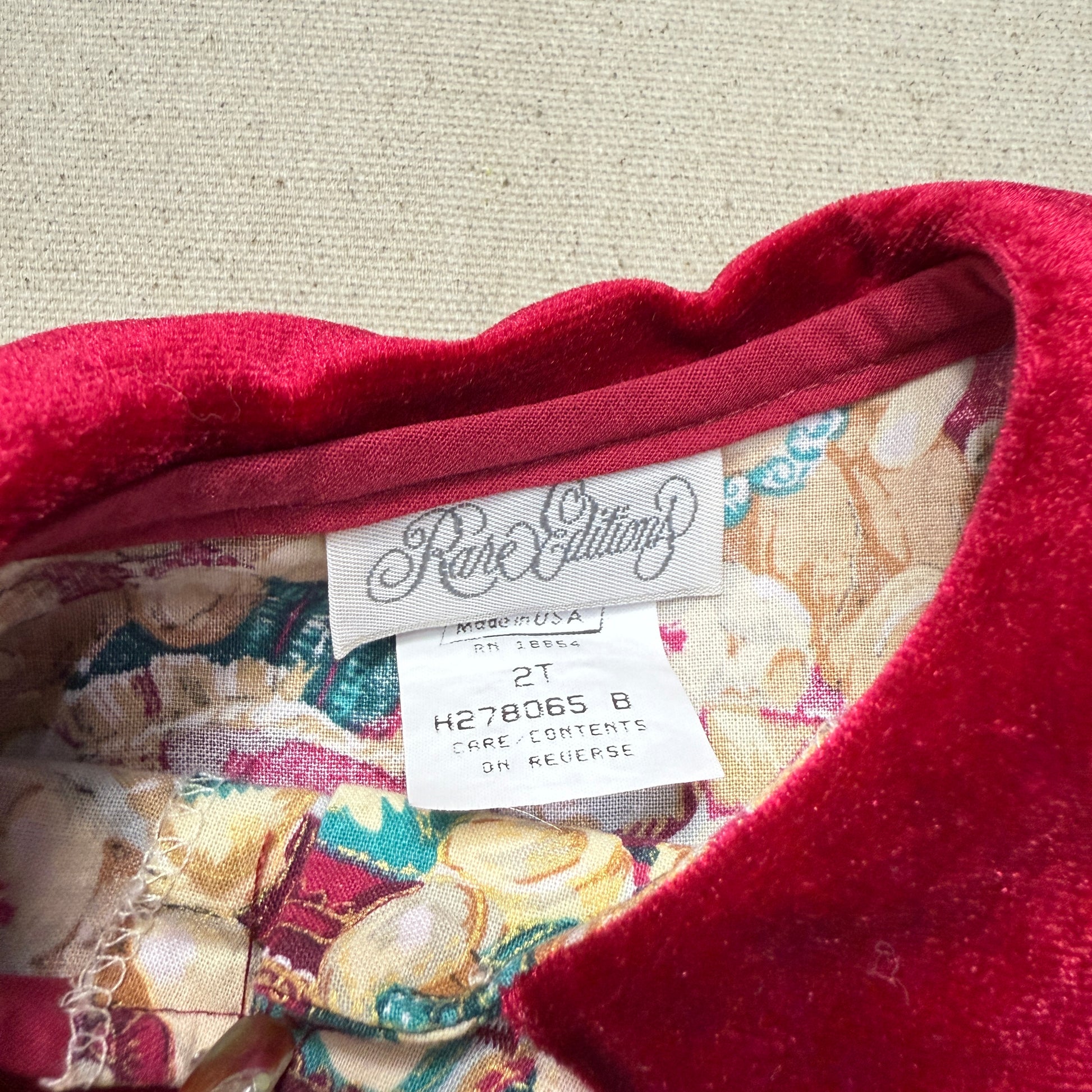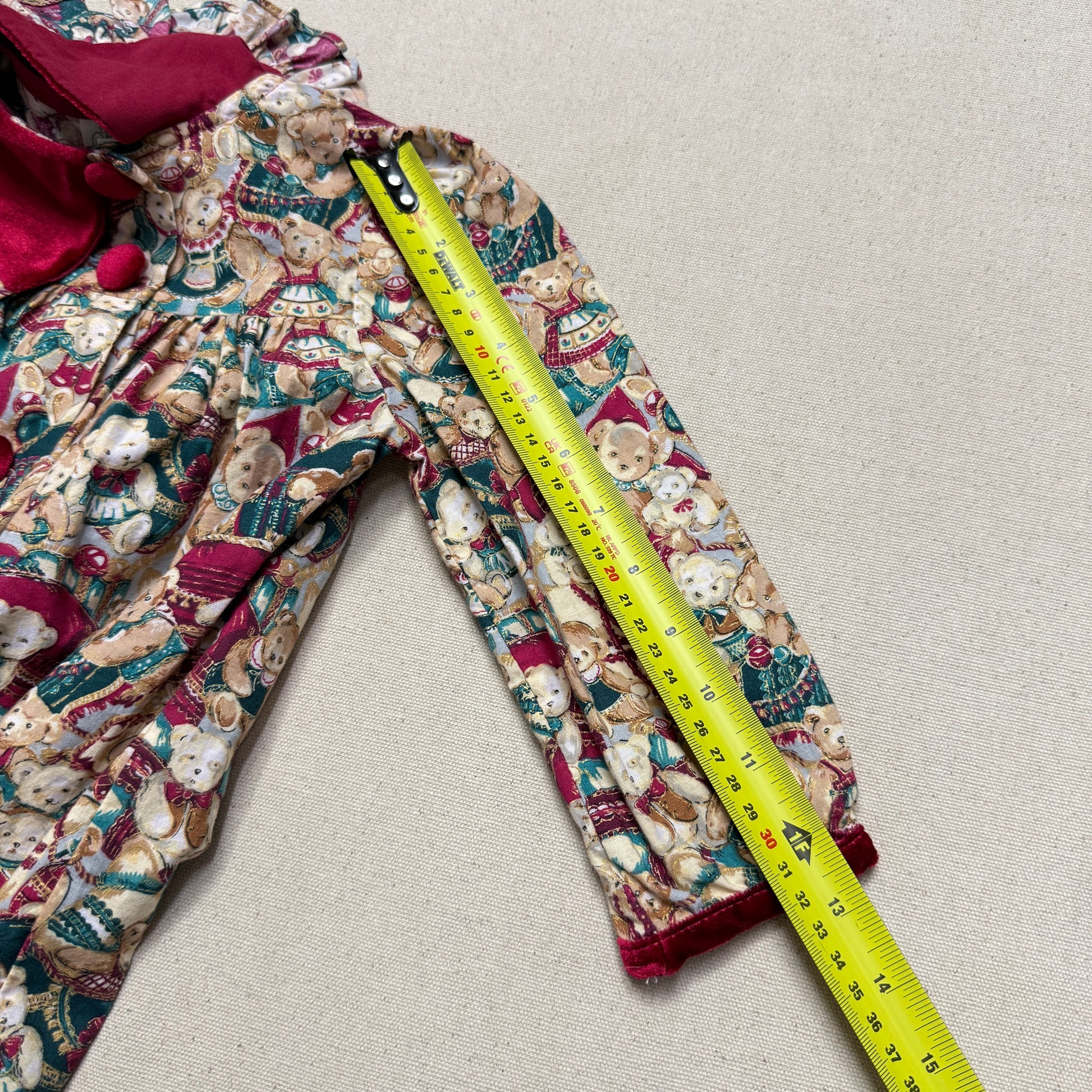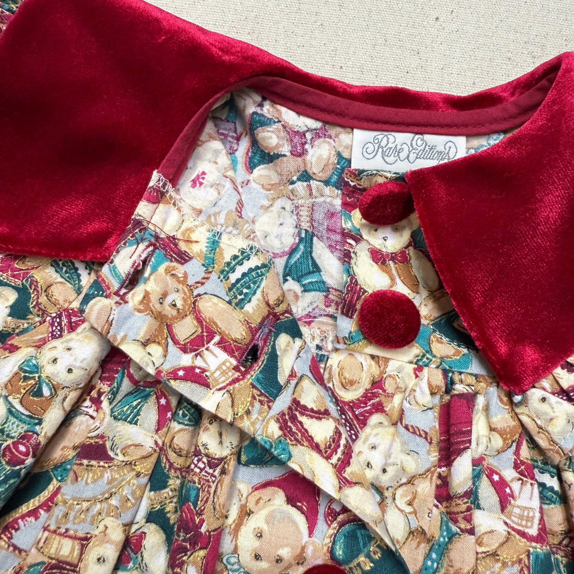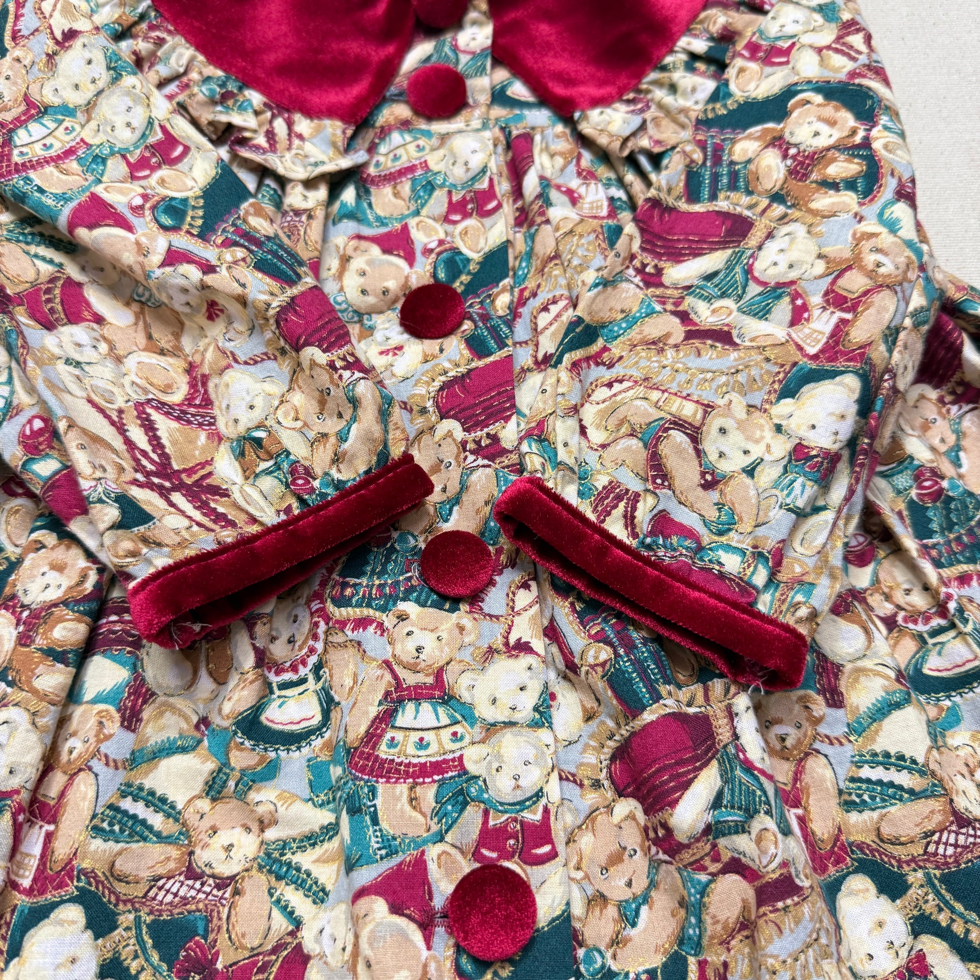 80s 90s Kids Toddler Vintage Teddy Bear AOP Christmas Pattern Velvet Round Collar Dress / 24m 2T dress