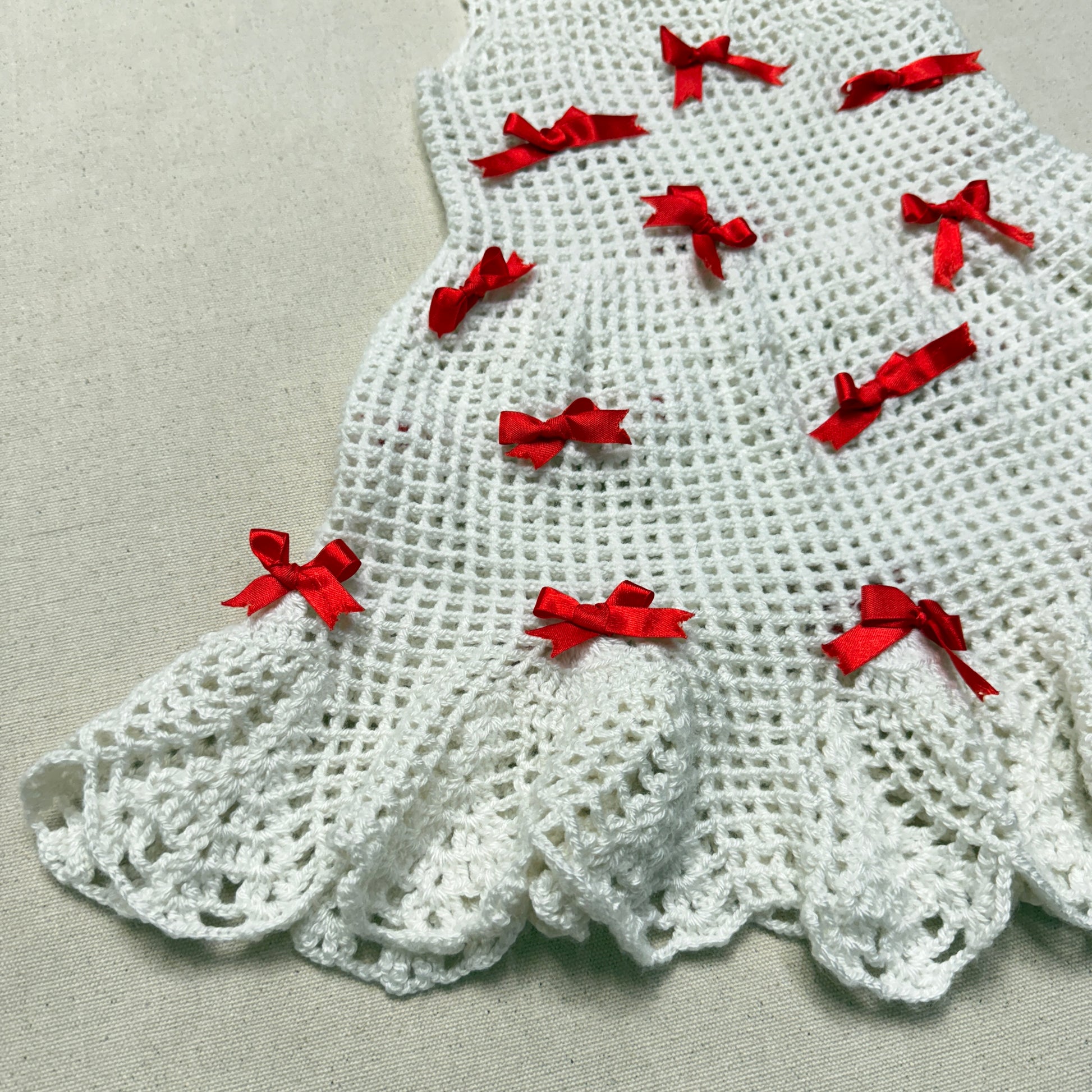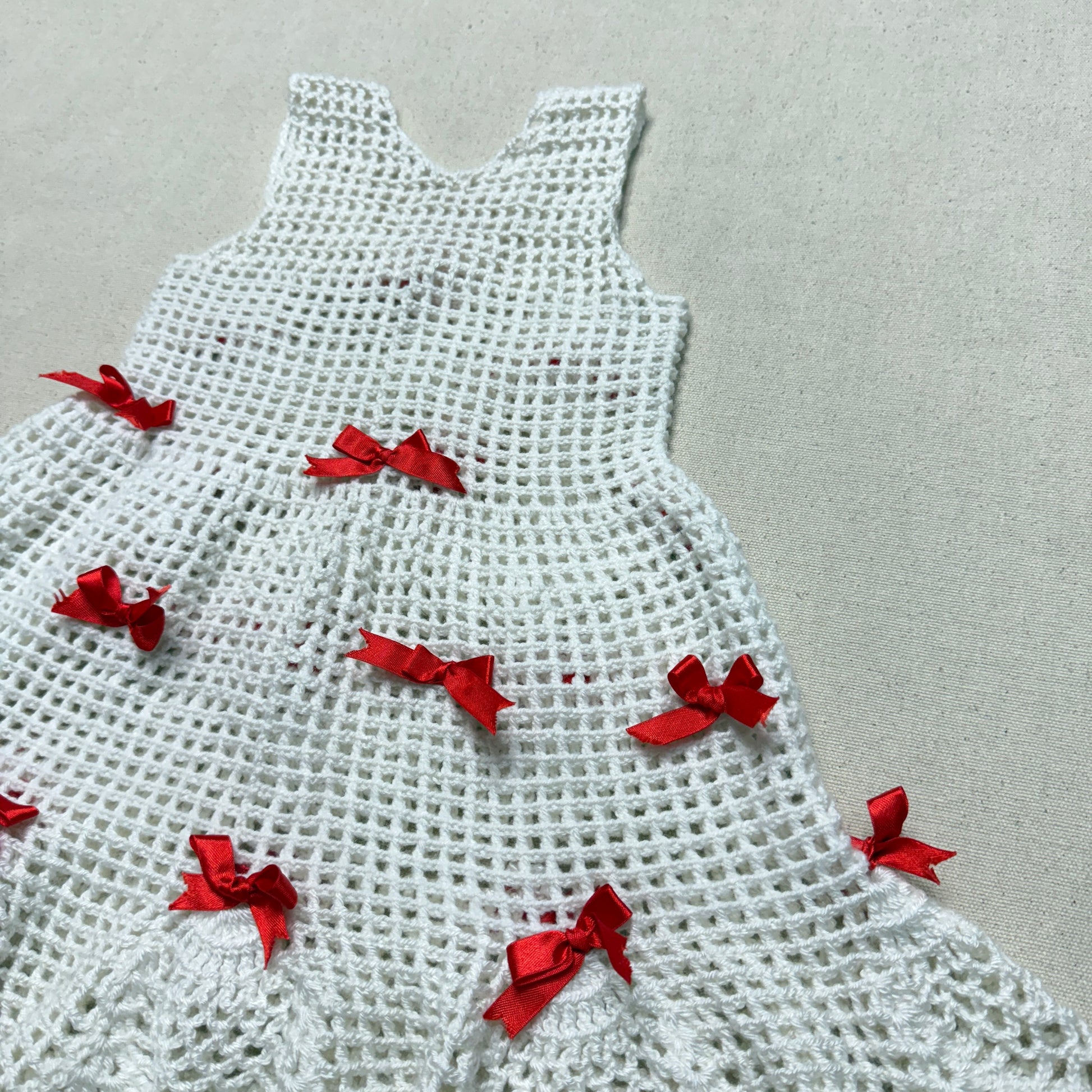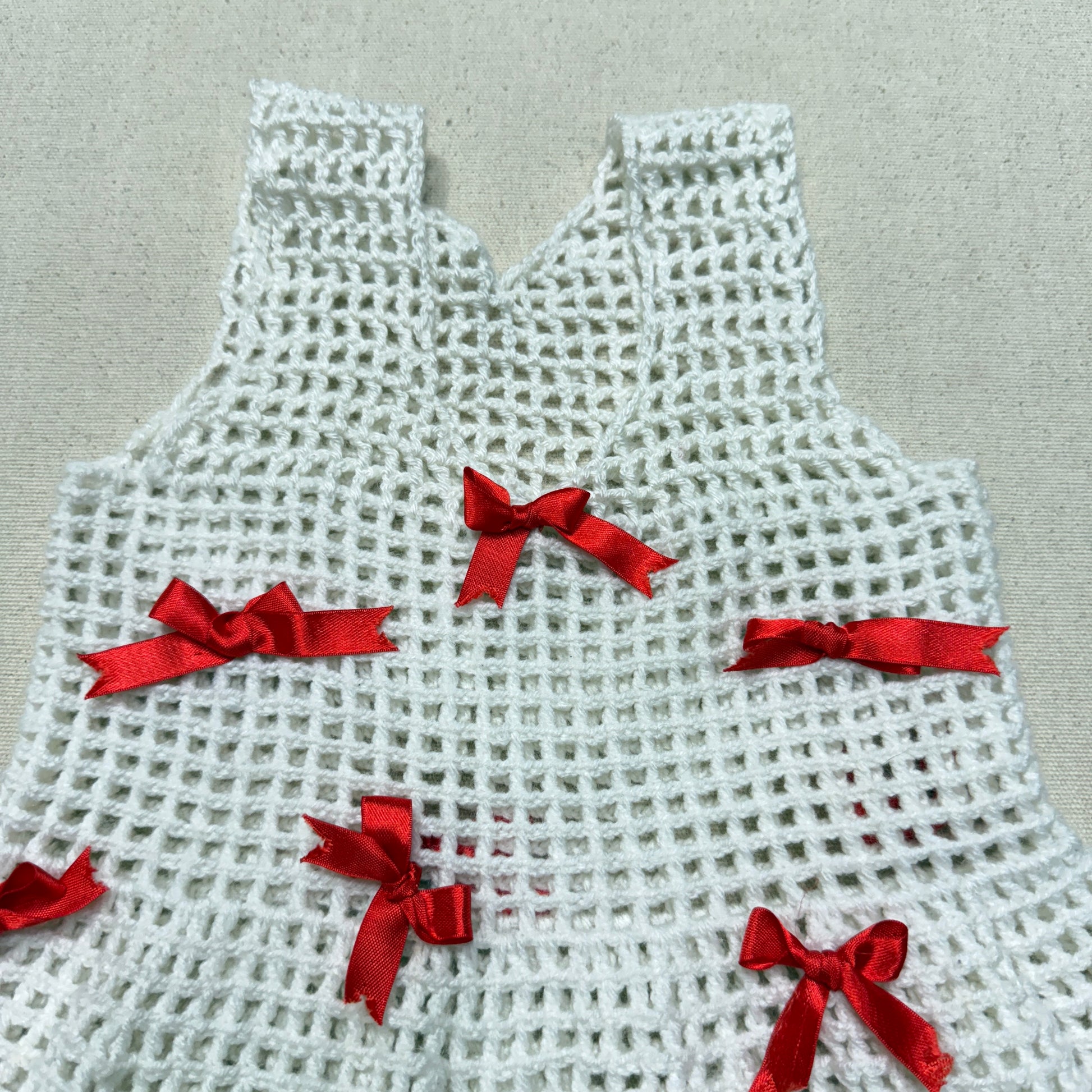 Kids Toddler Vintage Handmade Crochet Knit Removable Ribbons Design Dress / 3T 4T