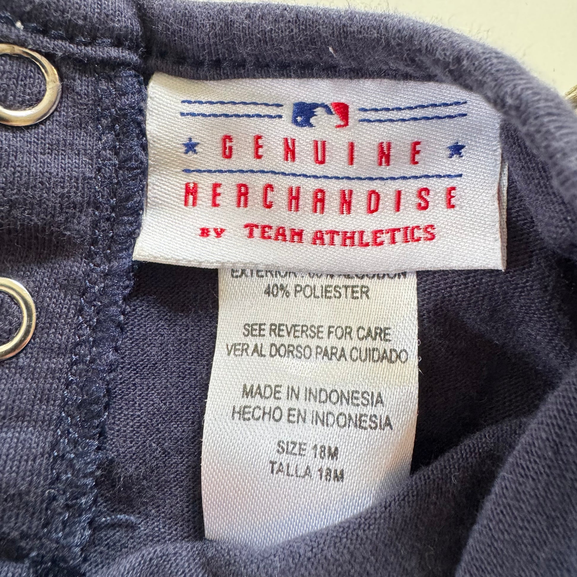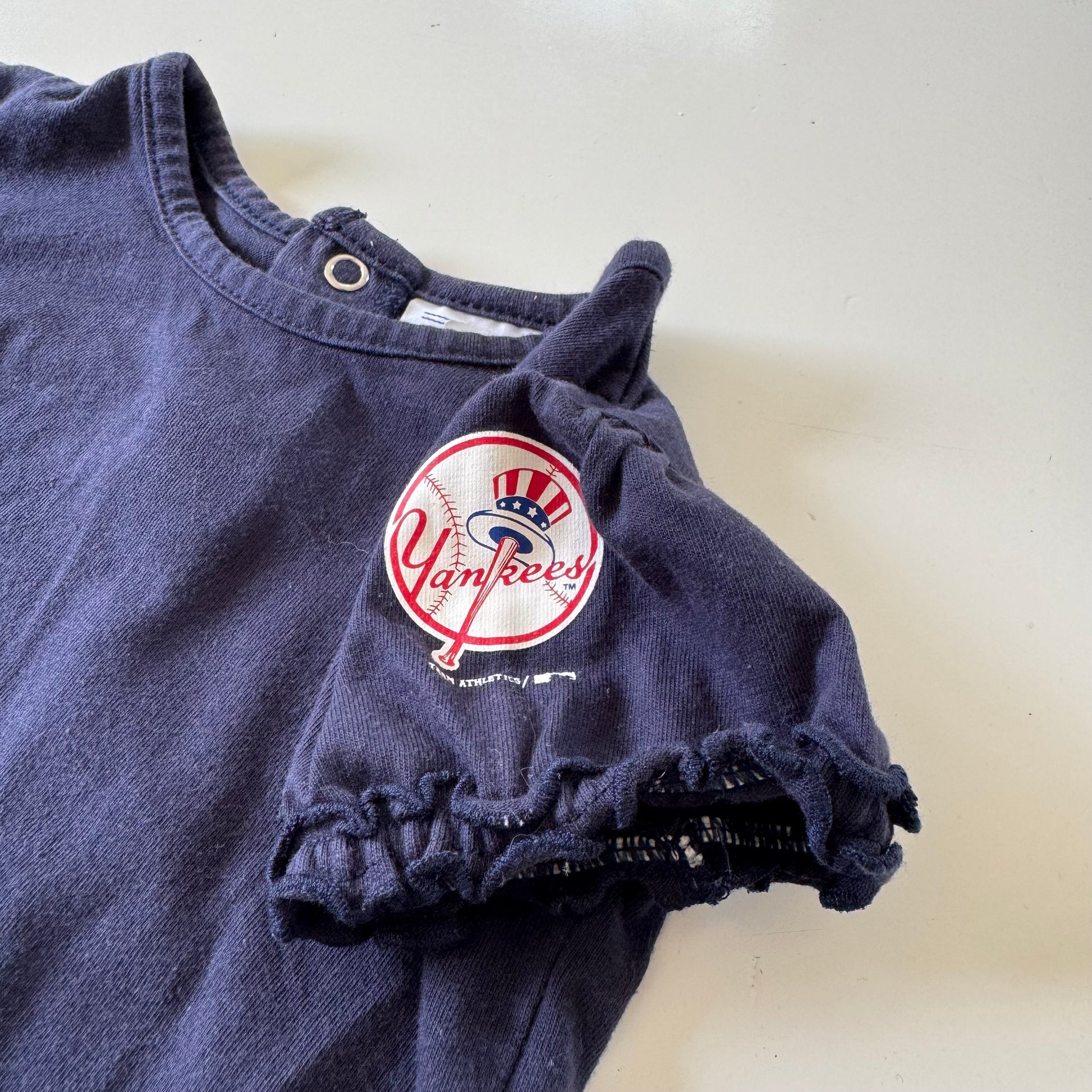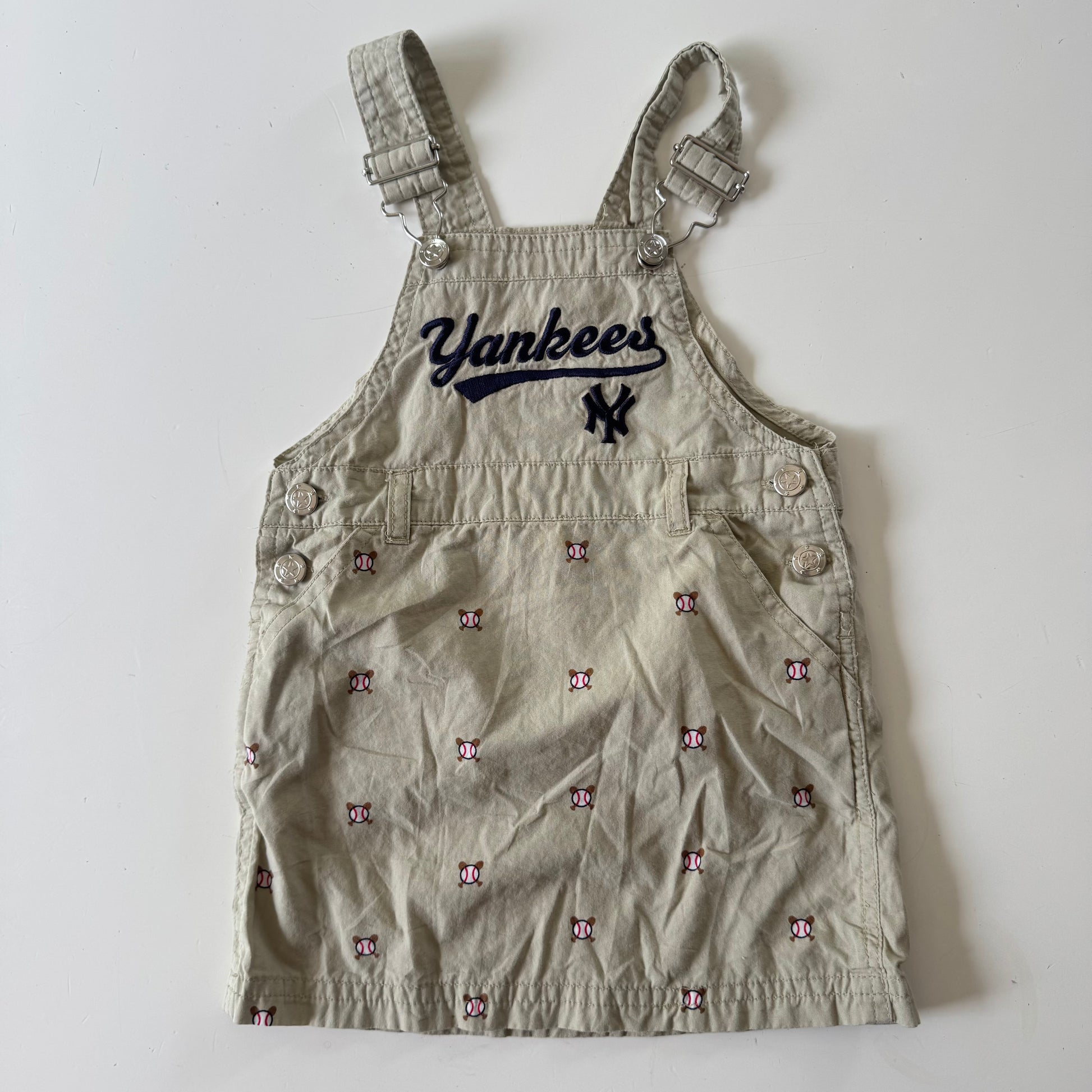 2000s Kids Girls Toddler 2 Piece Set MLB New York Yankees Adjustable Strap Khaki Dress Baseball Pattern With Short Sleeve Navy T-Shirt 18 m