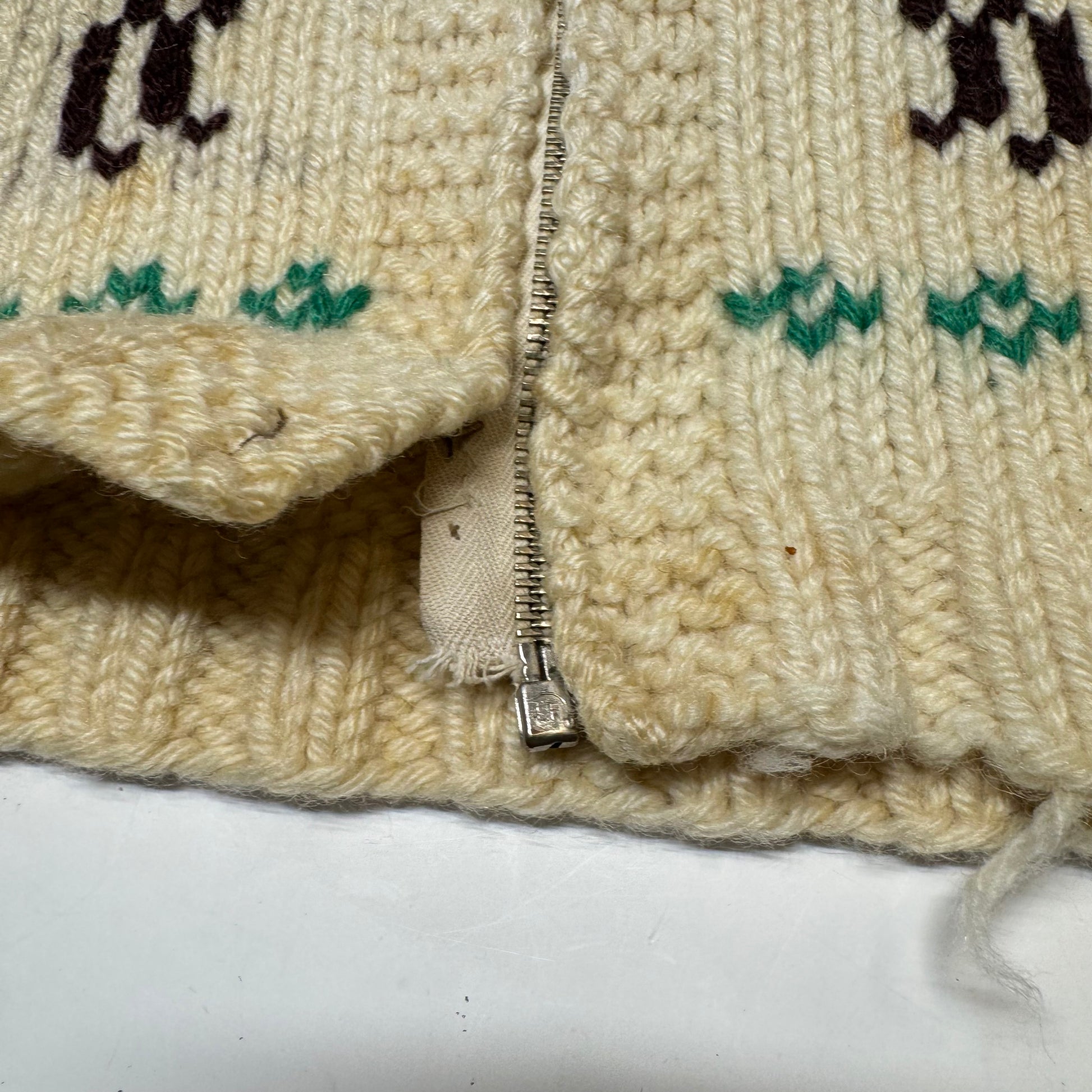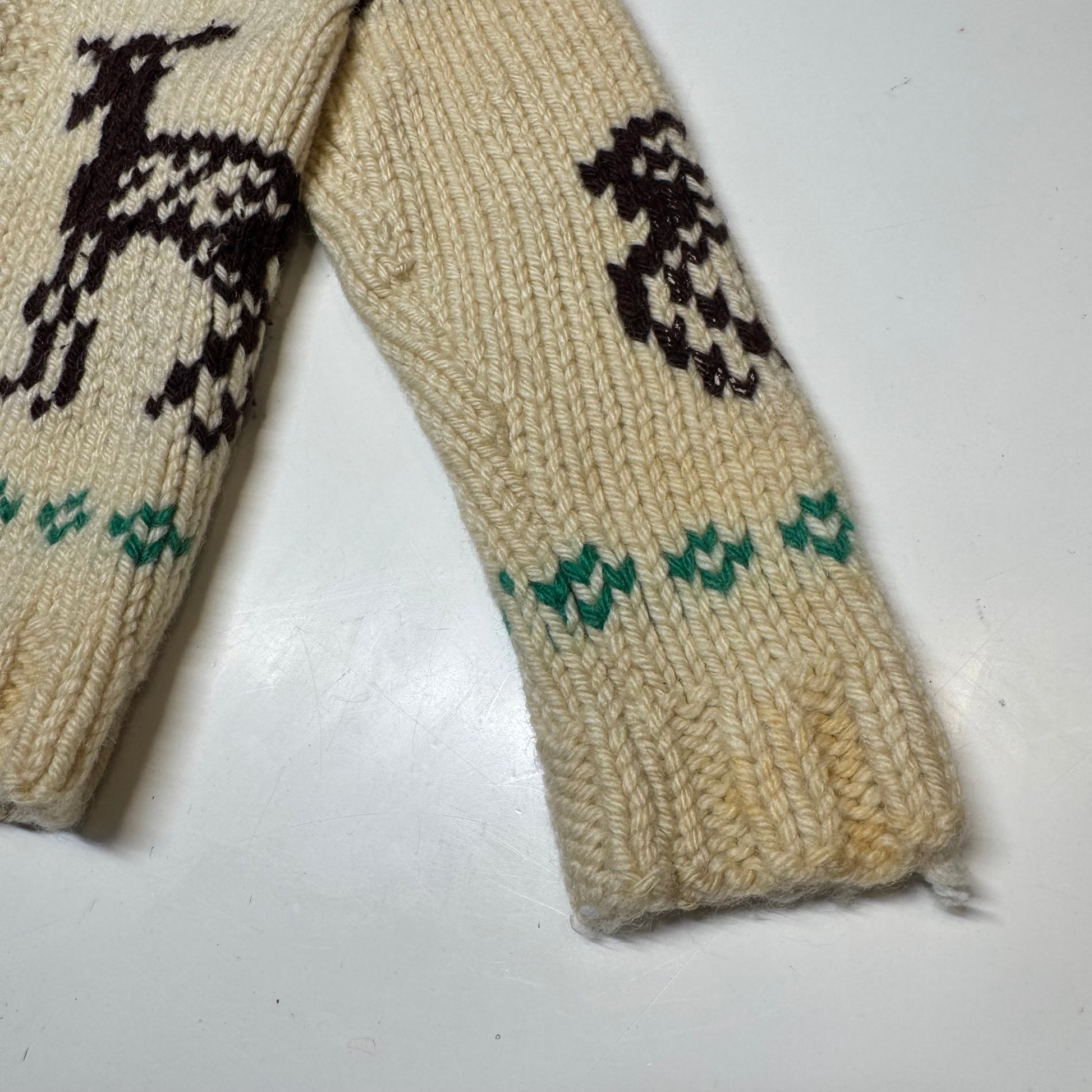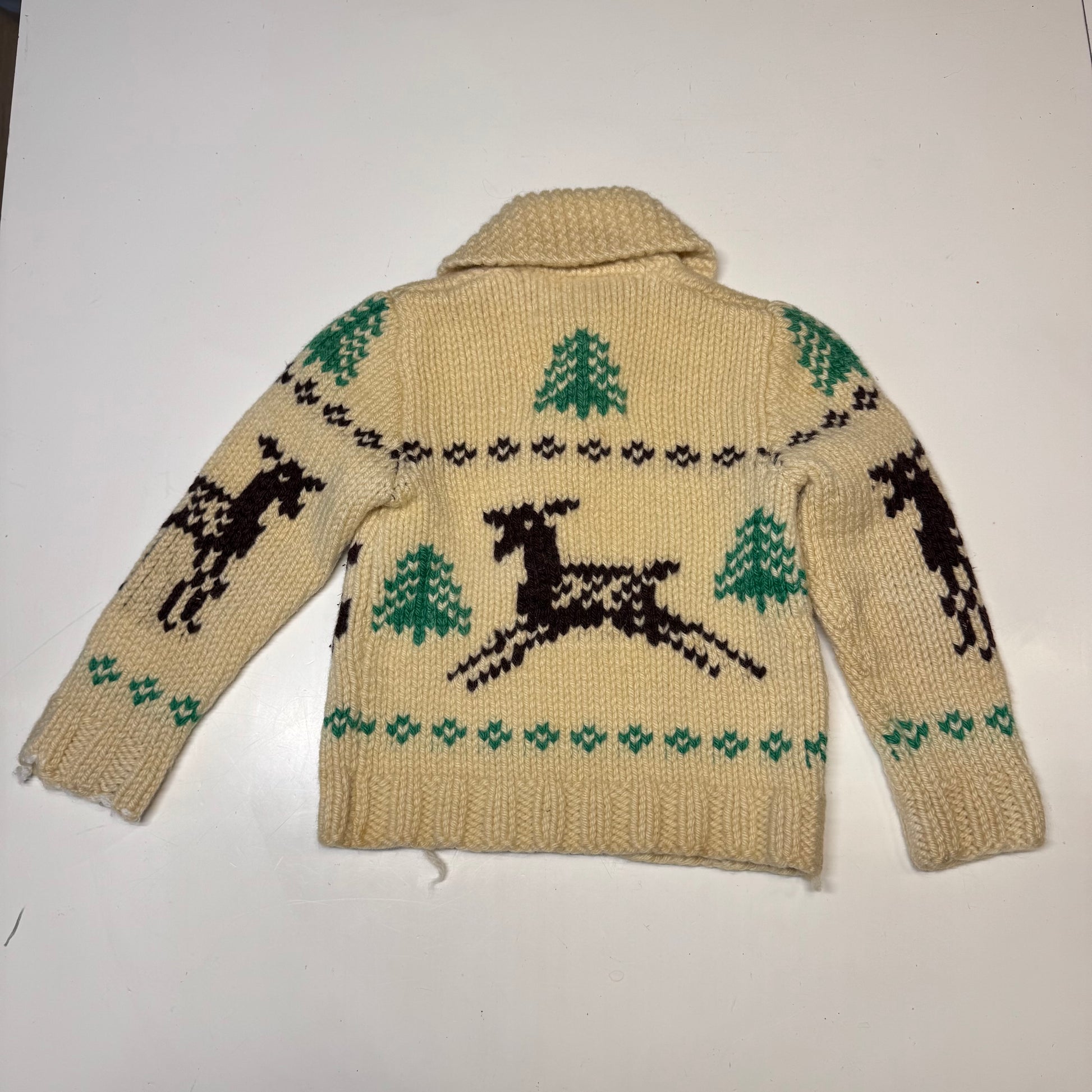 50s 60s Kids Toddler Vintage Beige Deer Lightning Zipper Cowichan Sweater / 3T 4T
