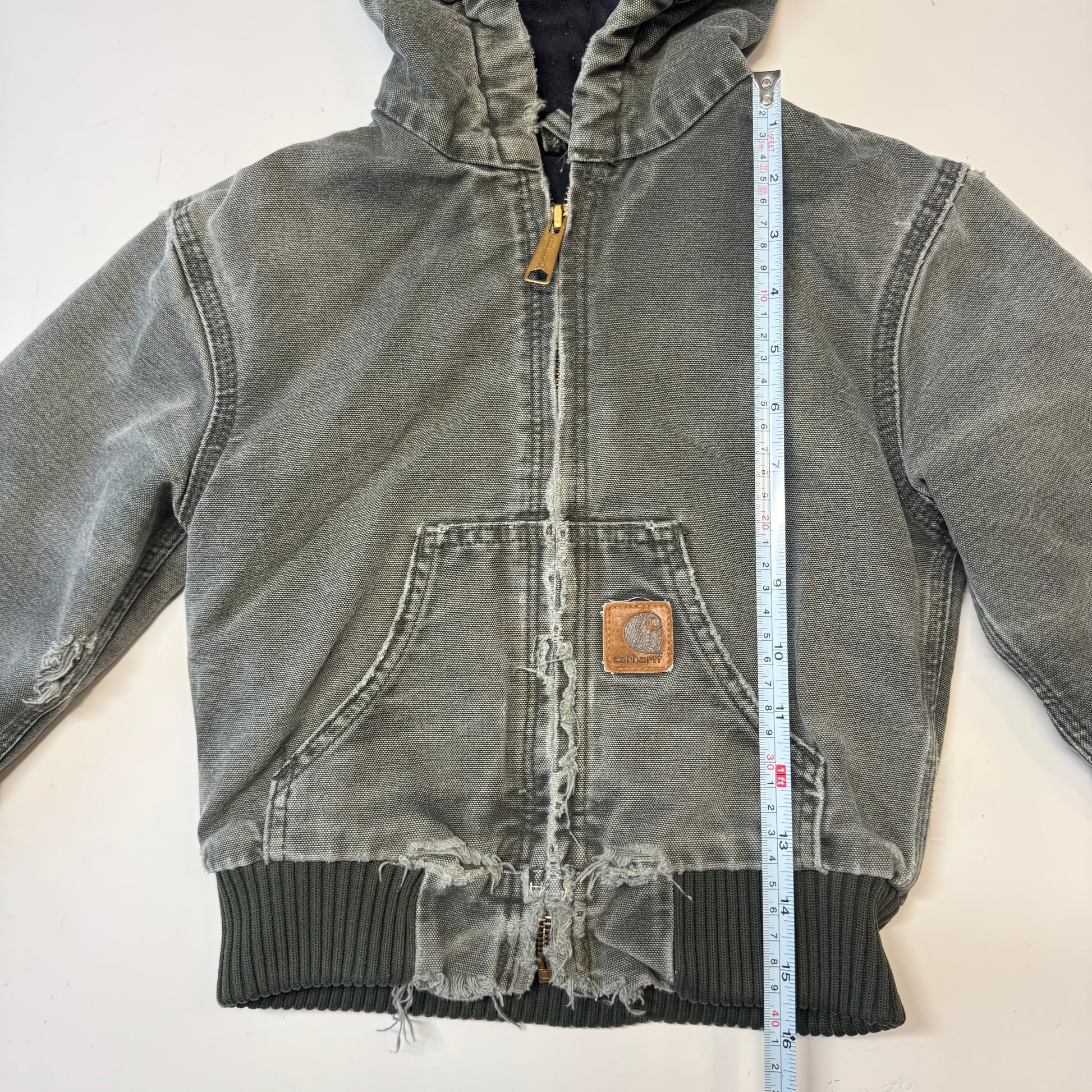 2006 Kids Toddler Vintage Active Dark Green Hooded Carhartt Jacket XS 4Y 5Y