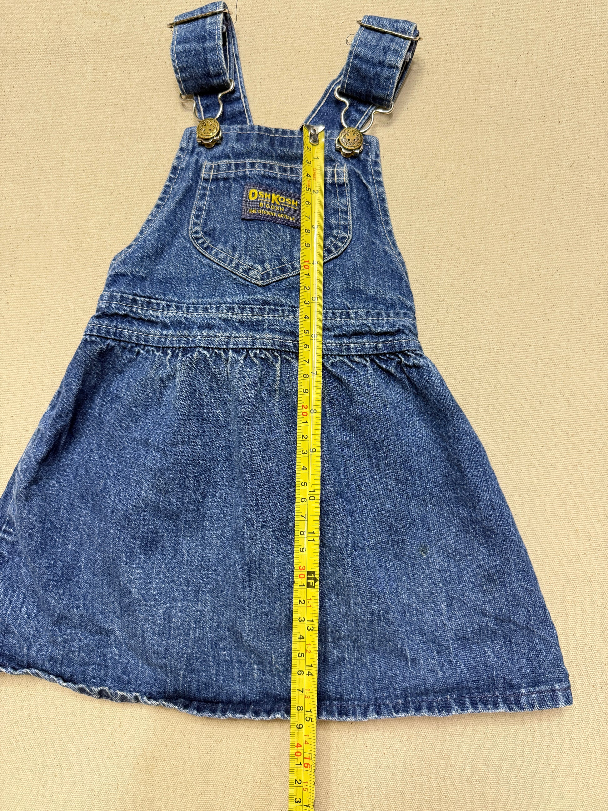 90s Kids Toddler Vintage Oshkosh Bgosh Cross Back Simple Casual Denim Dress / 18m 24m 2T / Made in USA