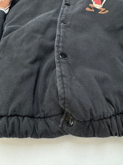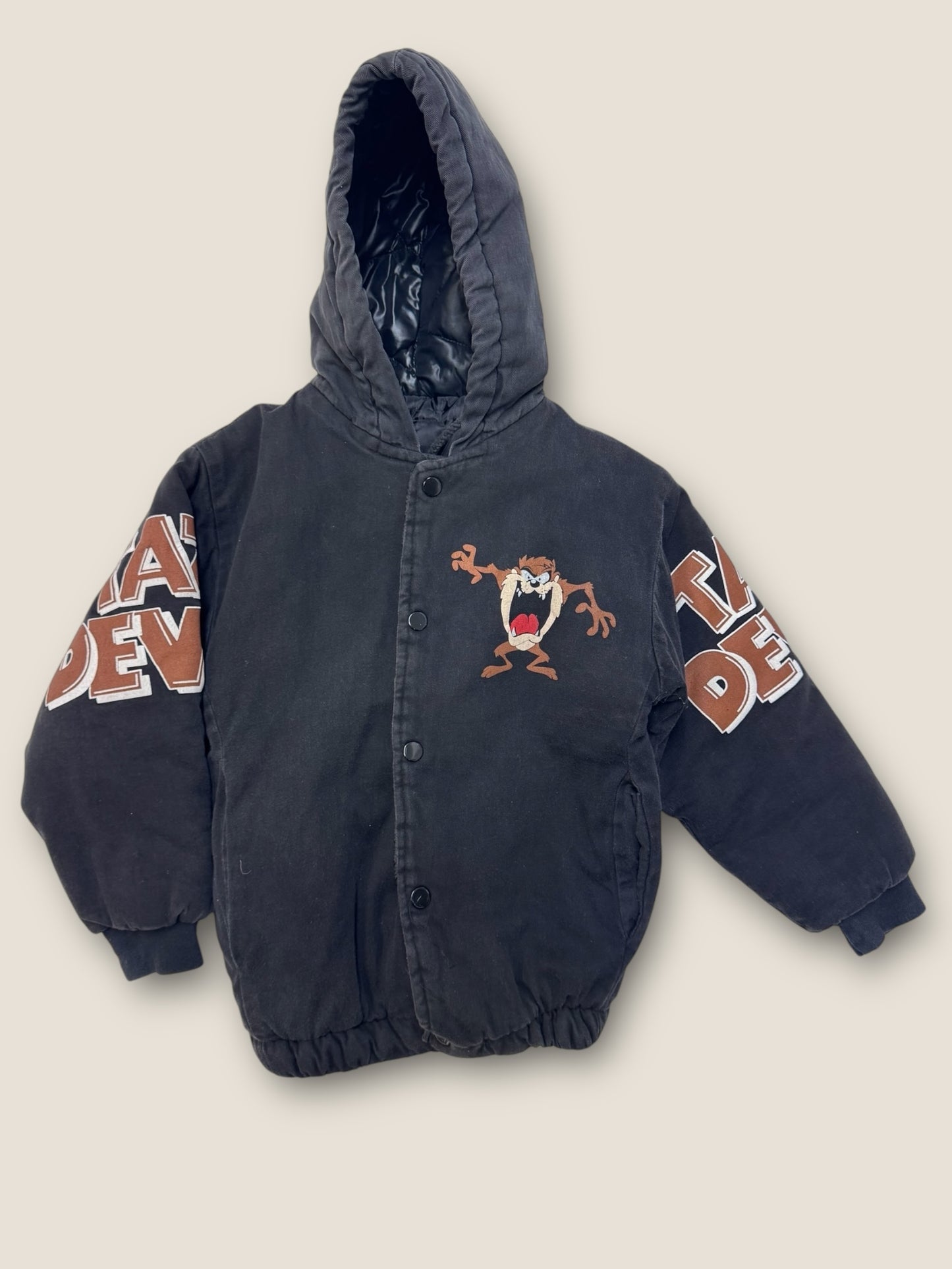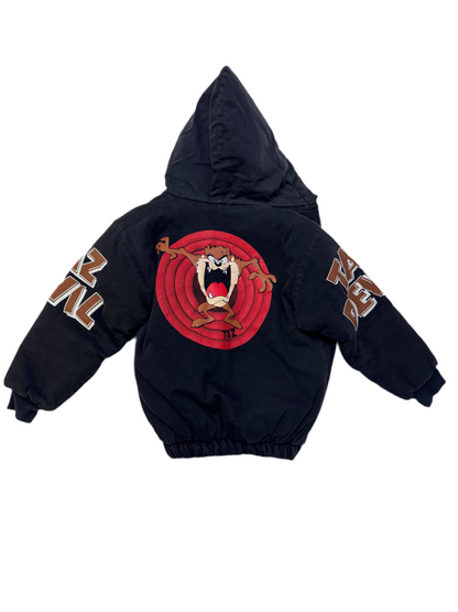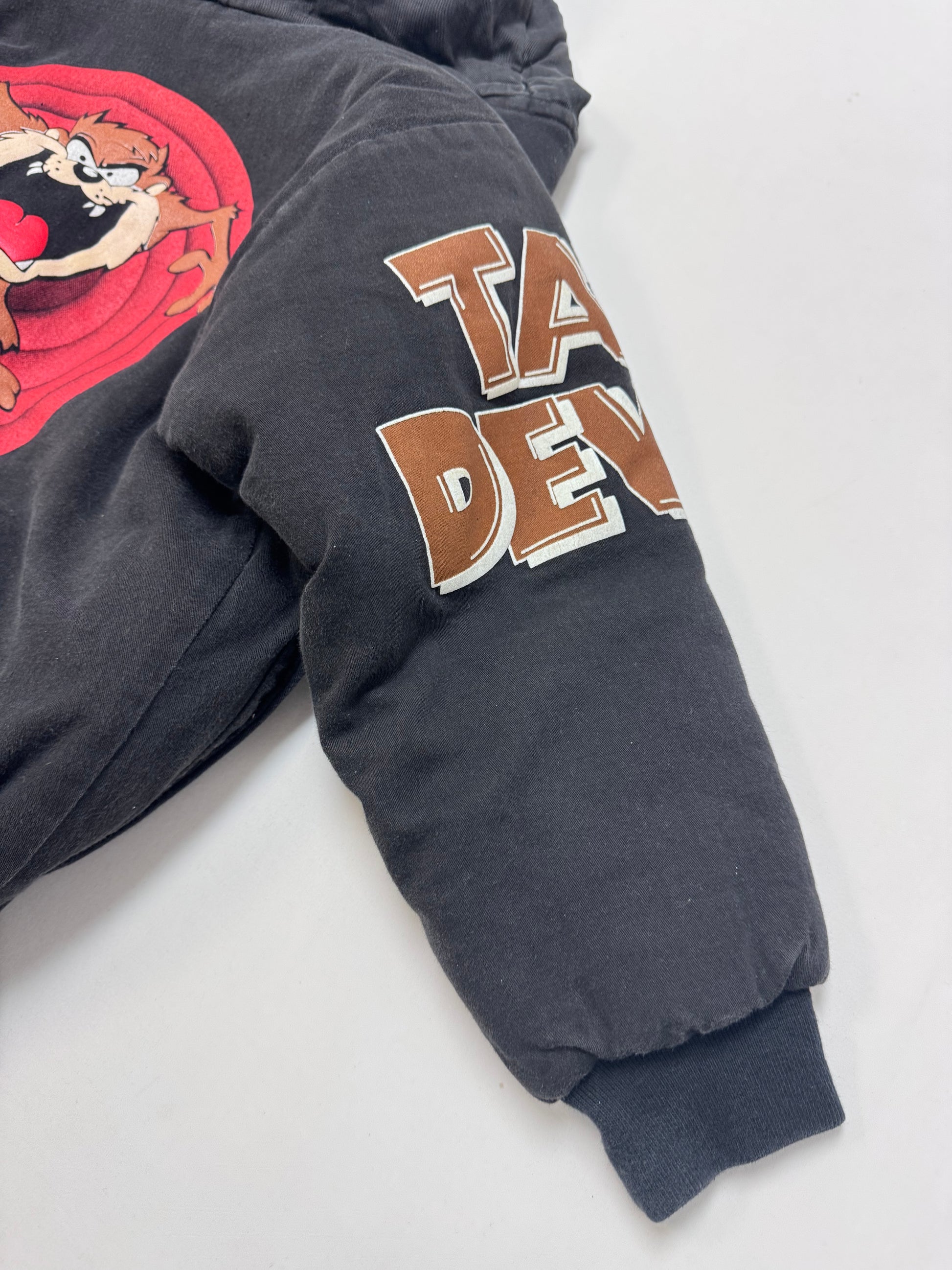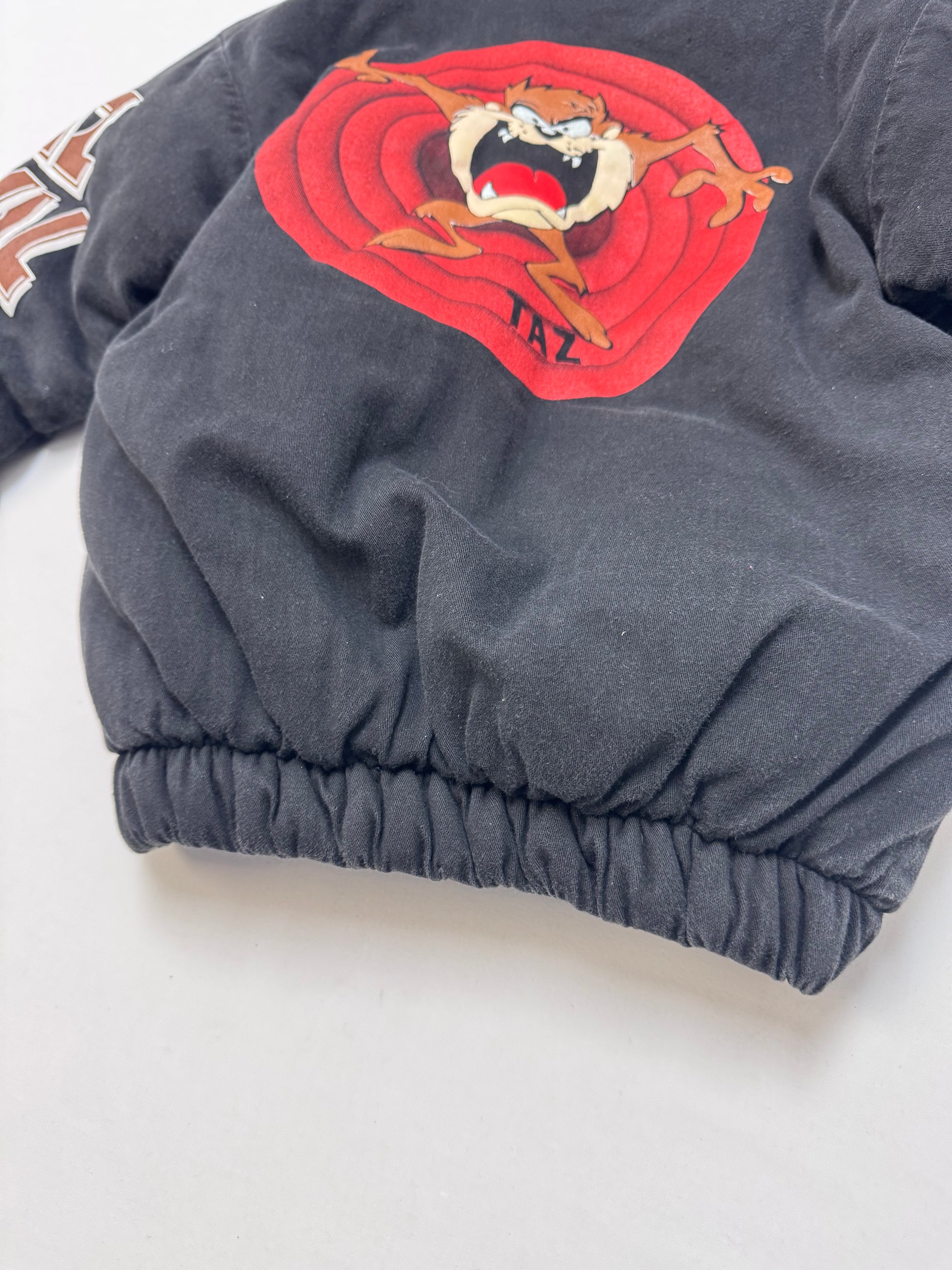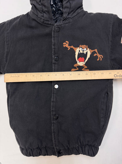 90s Kids Vintage Taz Looney Tunes Black Snap Thick Quiled Lined Jacket With Hood 6Y 7Y 8Y