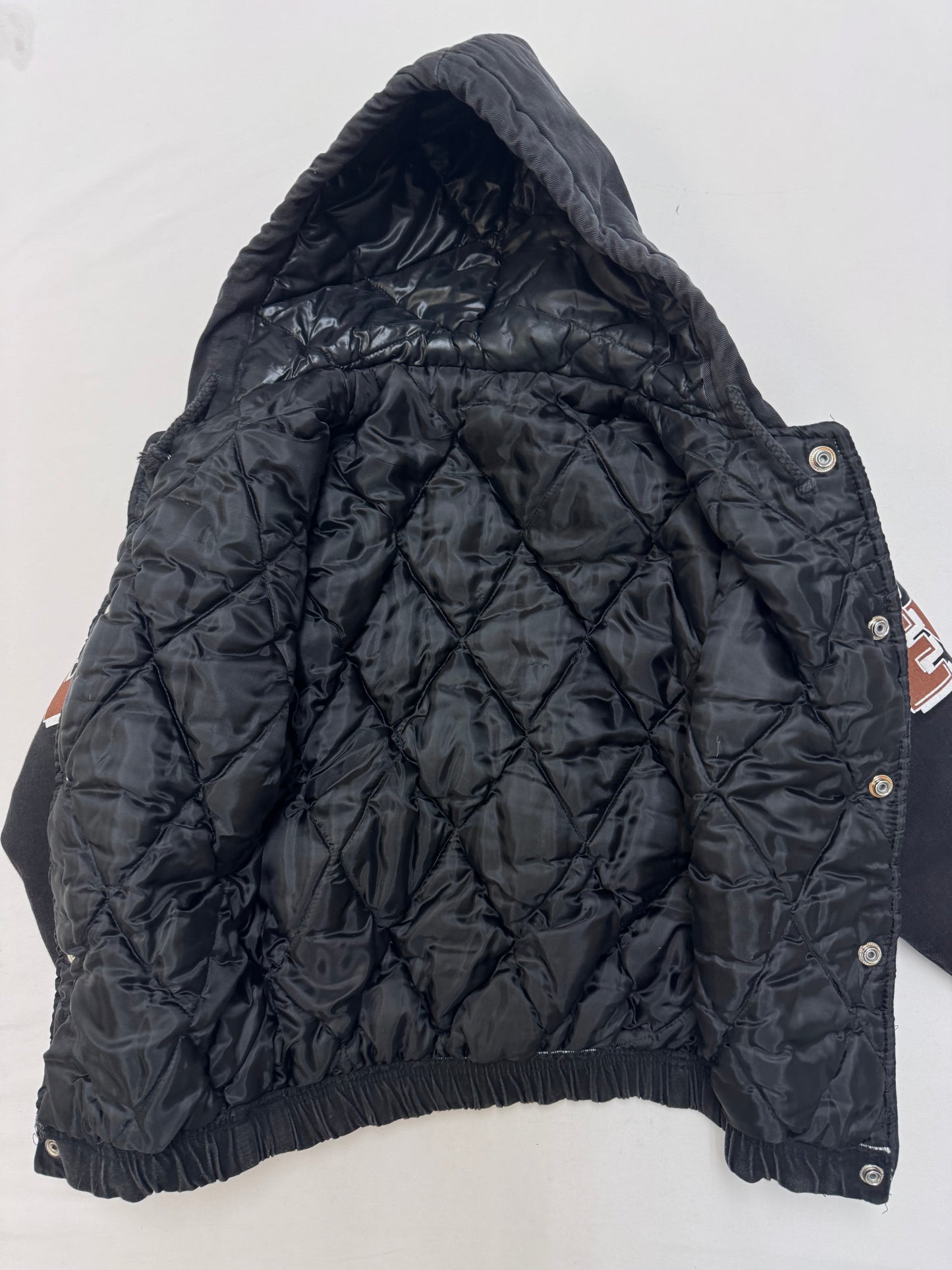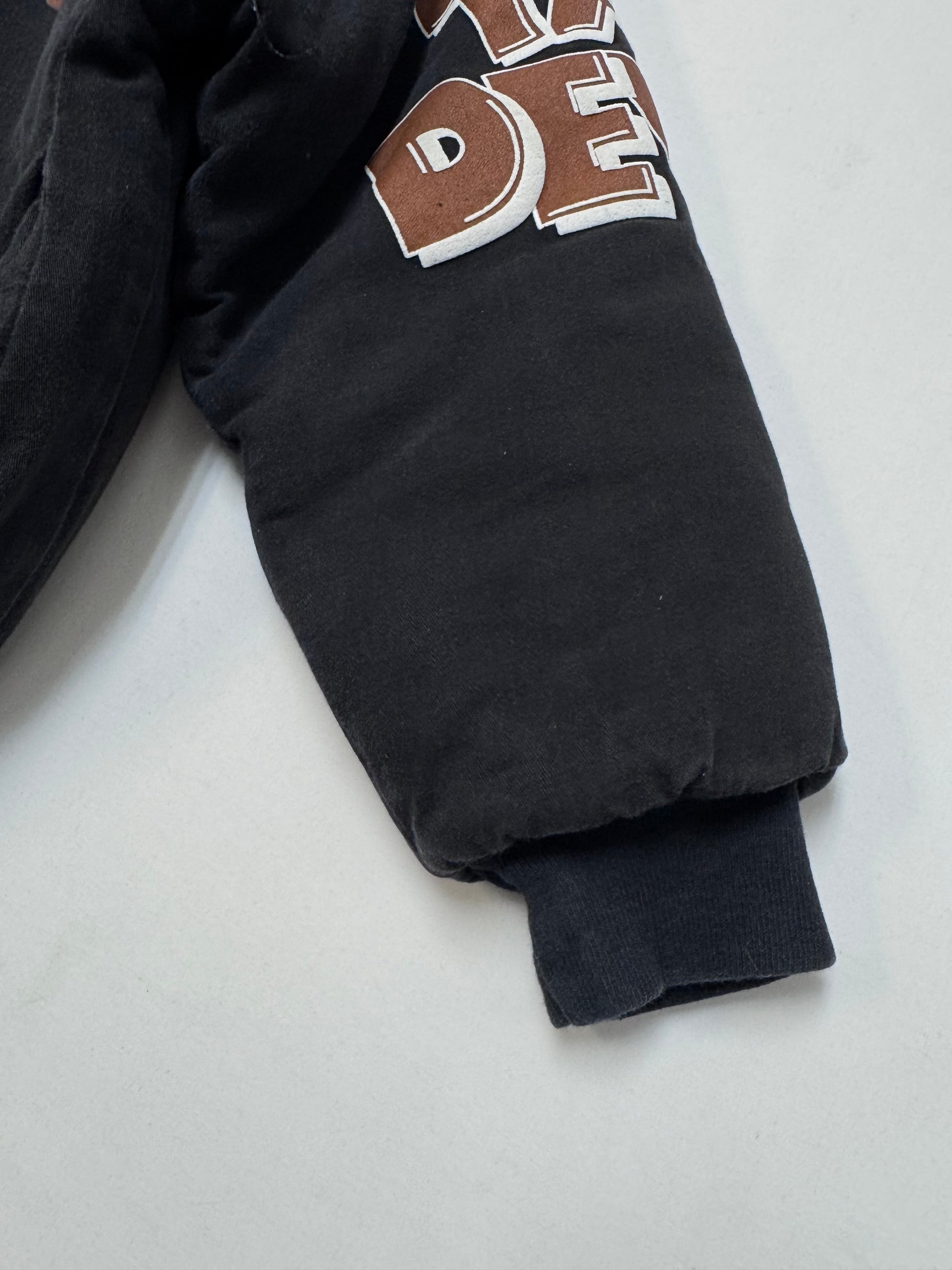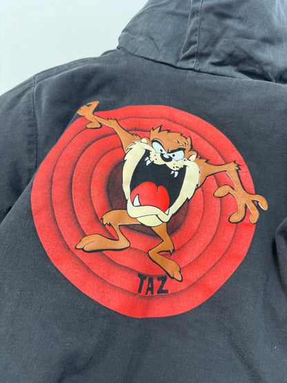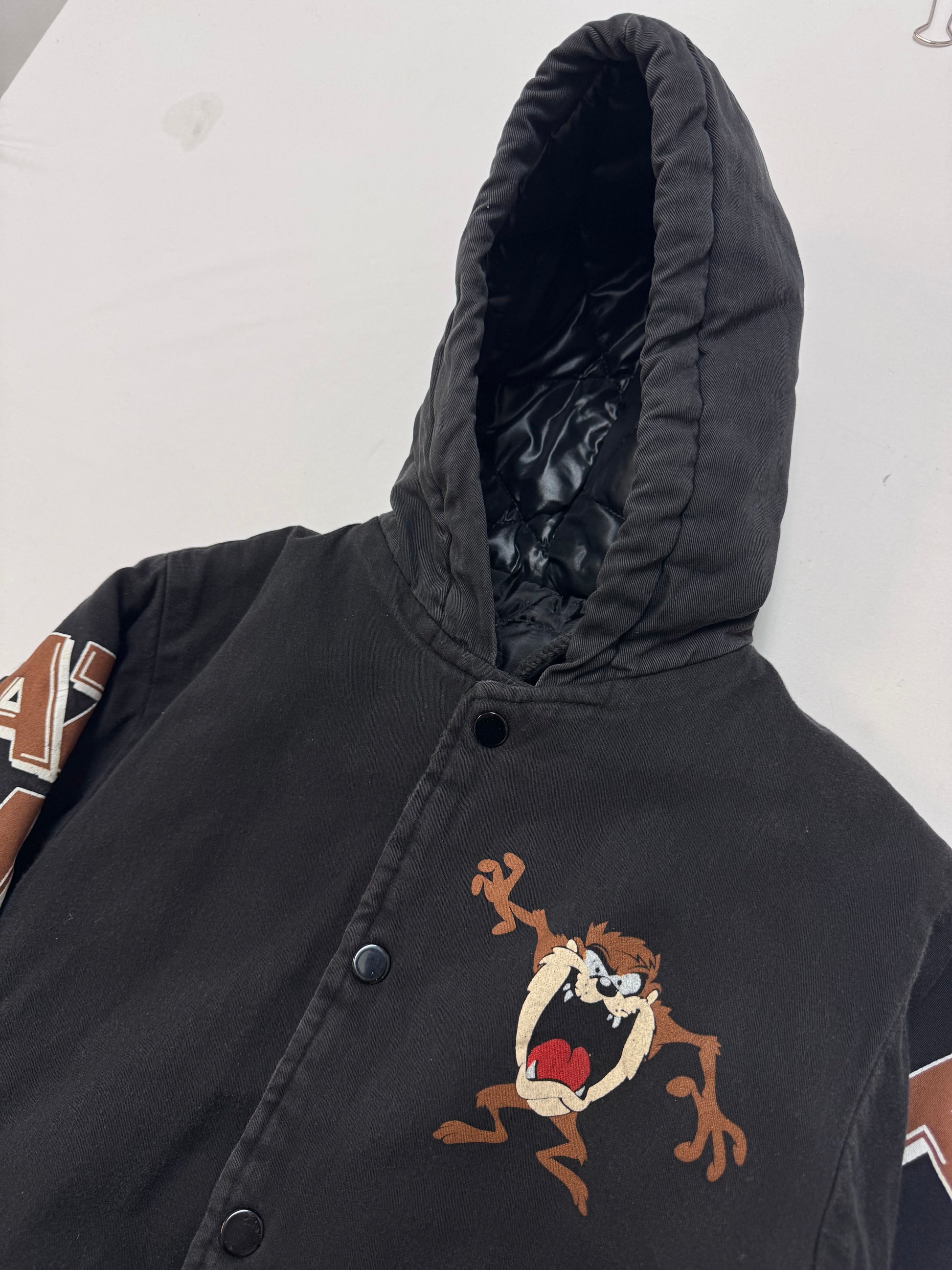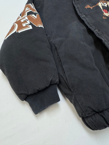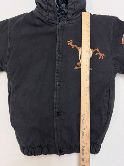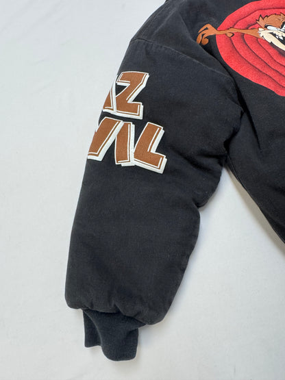 90s Kids Vintage Taz Looney Tunes Black Snap Thick Quiled Lined Jacket With Hood 6Y 7Y 8Y