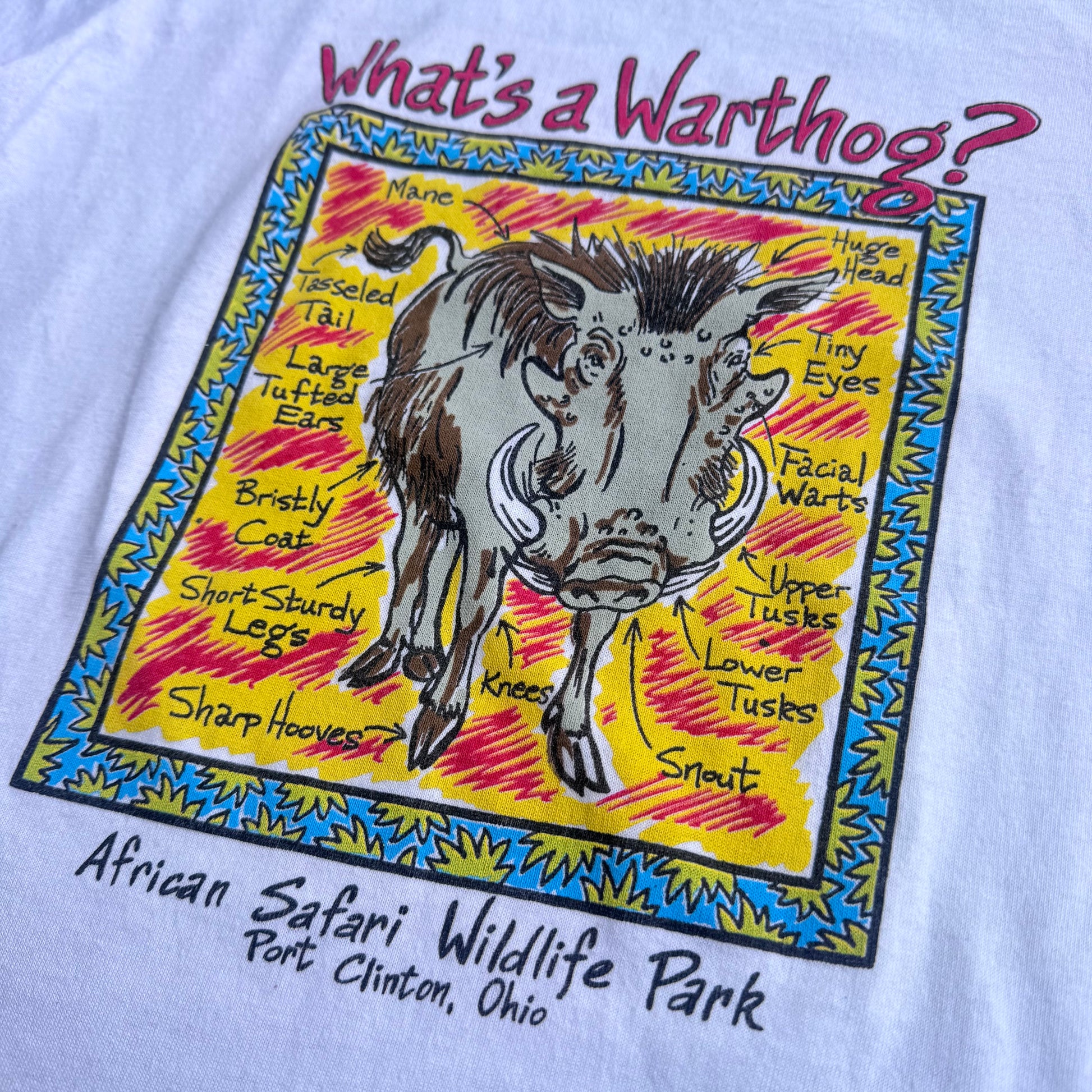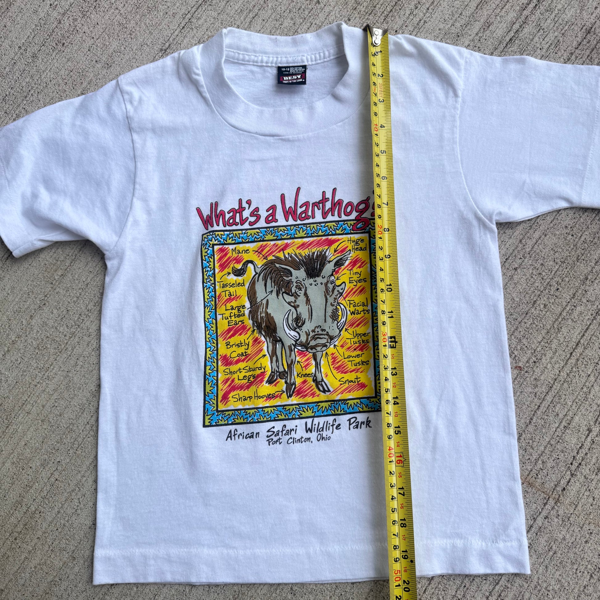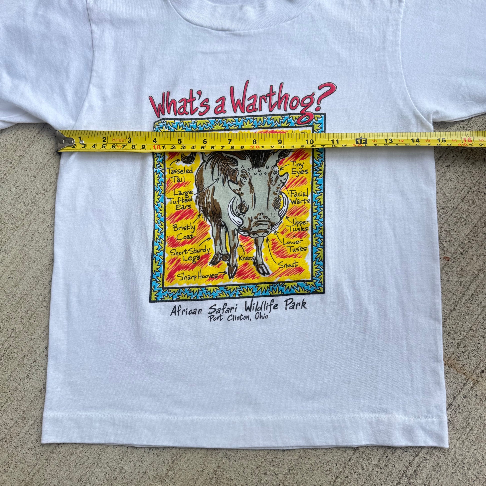 90s Kids Vintage What’s a Warthog? White 50/50 Single Stitch T-Shirt 10-12Y Baby Tee Made In USA