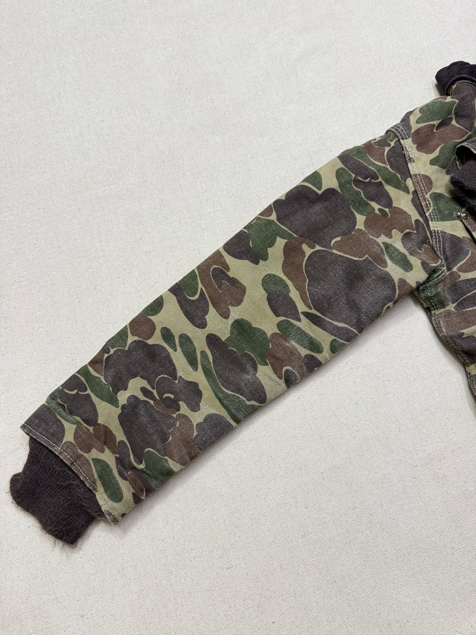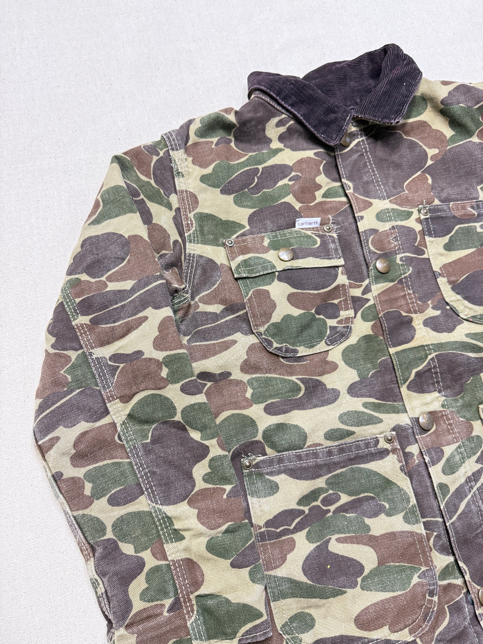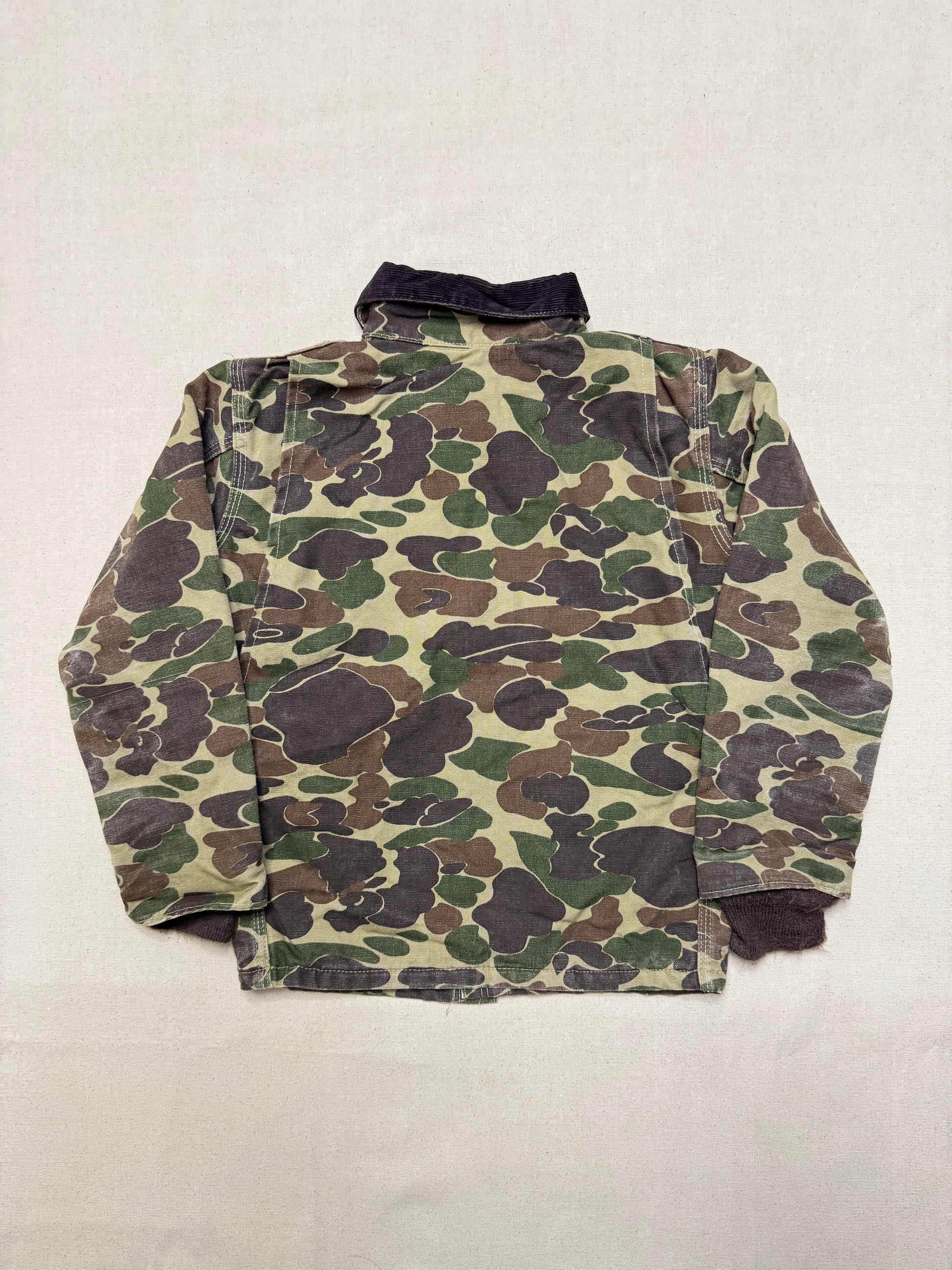 80s Kids Youth Vintage Carhartt Rare Duck Hunting Camo Corduroy Collar Quilt Lined Jacket / 7y 8y 9y