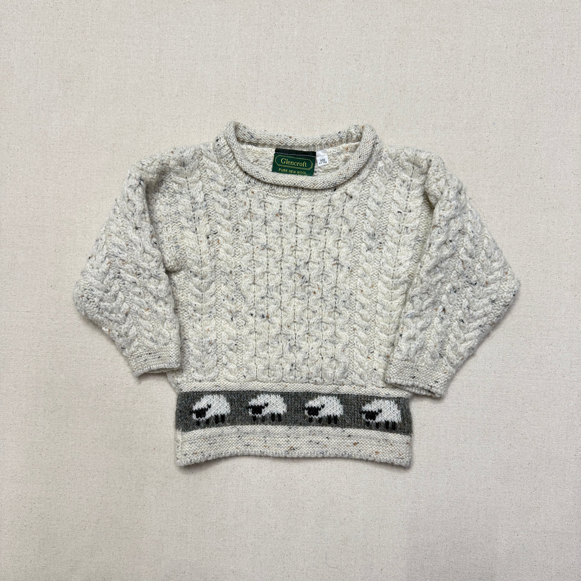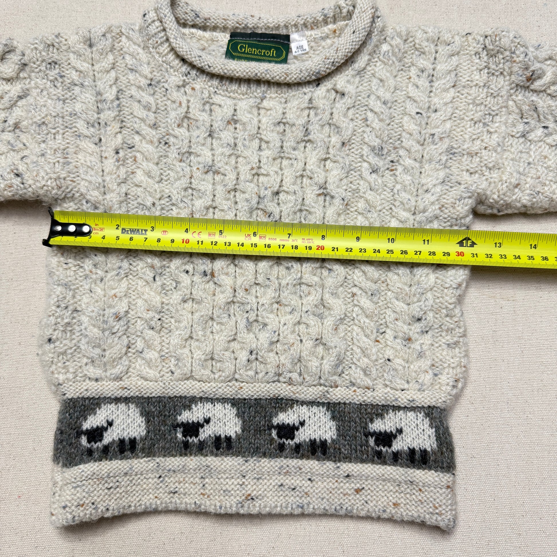 90s Kids Toddler Vintage Sheep Pattern Glencroft Pure Wool irish Fisherman Knit Sweater / 2T 3T