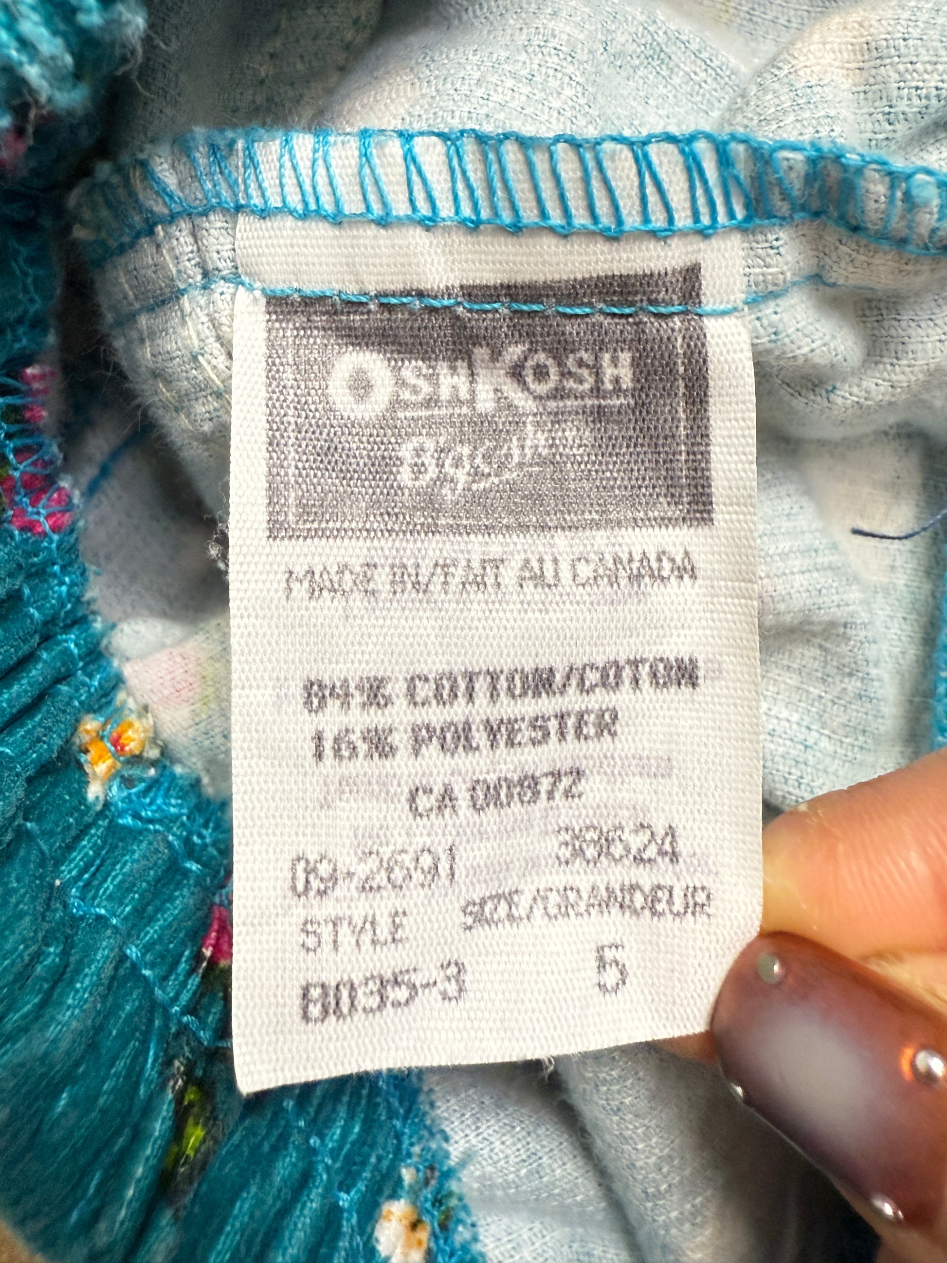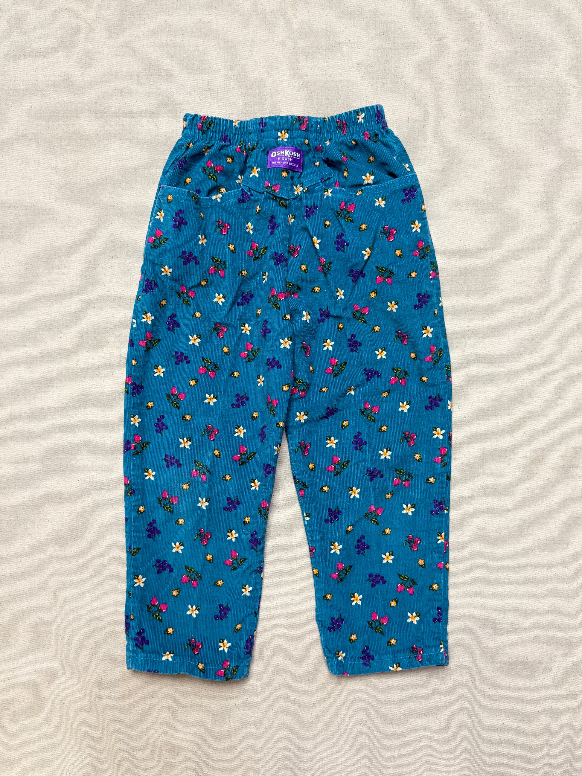 90s Kids Toddler Vintage Oshkosh Bgosh Fruits Flower AOP Corduroy Elastic Pants / 4T 5T